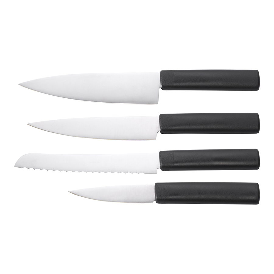 Набор Cut ножи – нержавеющая сталь 3CR13, полипропилен; держатель – ABS-пластик. Размеры: доски – 30х22,8х0,7 см; держатель – 30,5х10,7х20,8 см; поварской нож – 30х4,2 см, толщина стали – 2 мм; нож для хлеба – 30х2,7 см, толщина стали – 2 мм; нож для нарезки – 28,7х3,5 см, толщина стали – 2 мм; нож для очистки овощей – 22,5х2,6 см, толщина стали – 1,5 мм. Количество предметов в наборе: 9 шт. Ножи и разделочные доски можно мыть в посудомоечной машине.