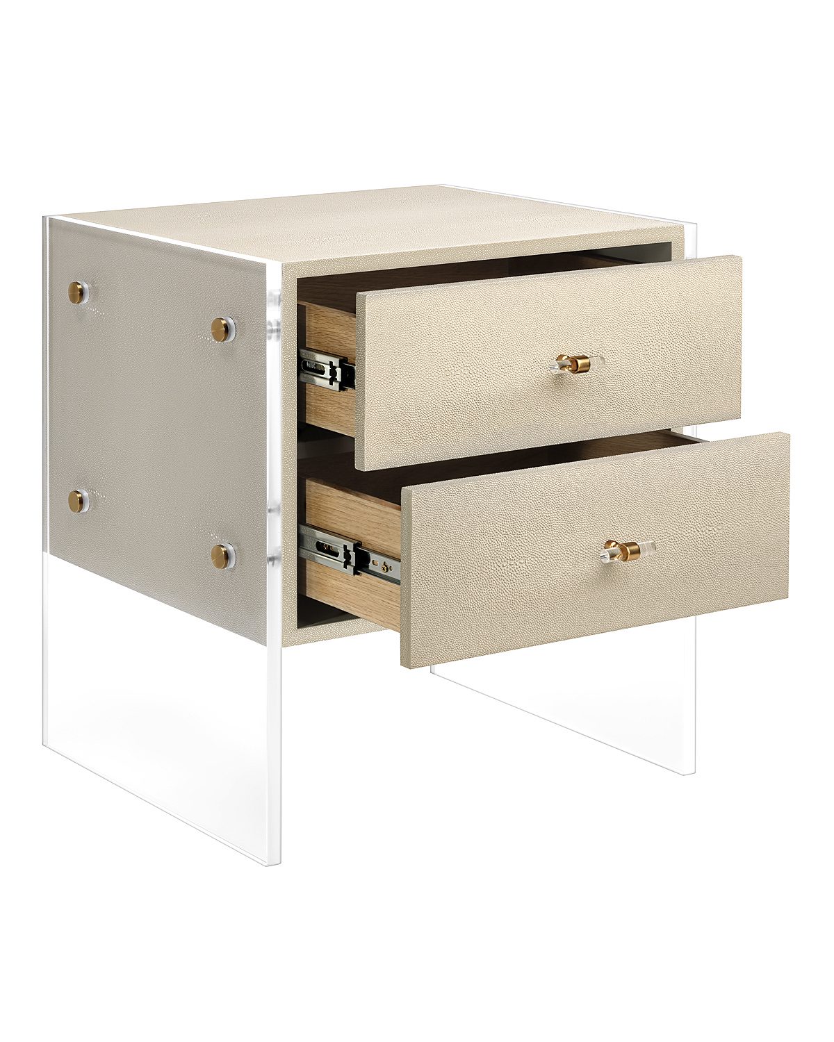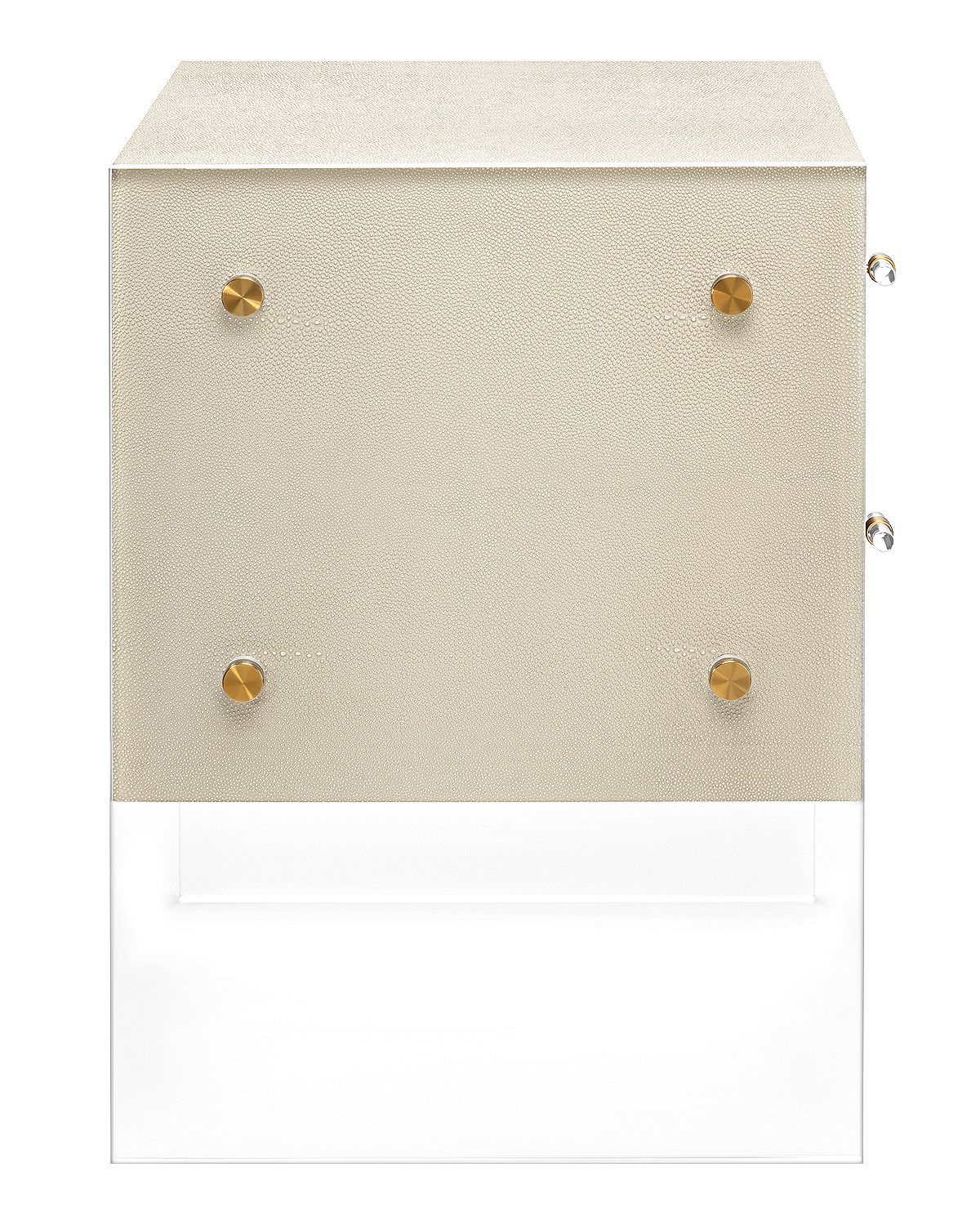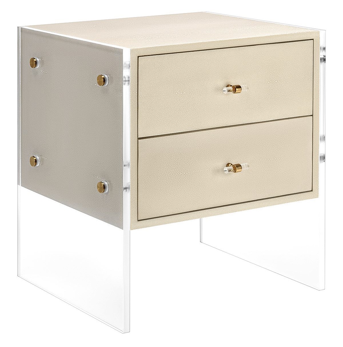 Бежевая прикроватная тумба “Берк” — это воплощение современного стиля с уникальными деталями. Отделка из шагрени, прозрачные акриловые боковые ножки и акцентная металлическая фурнитура создают легкий, почти парящий образ. Эта тумба не просто место для хранения, а настоящий арт-объект, который станет главным украшением вашей спальни, привнося в интерьер нотку футуристичности и элегантности.