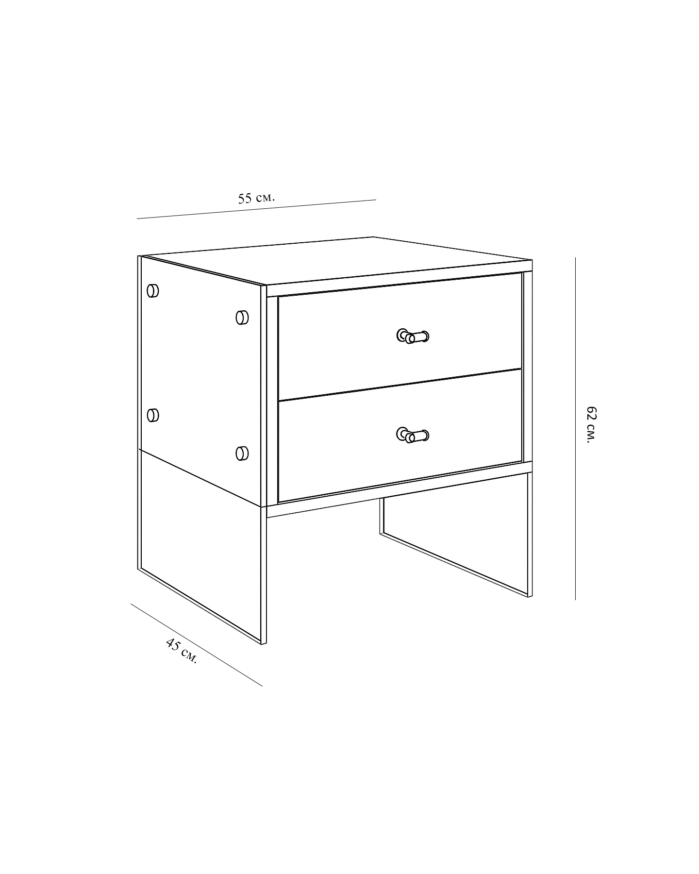 - Размеры (Ш x Г x В): 62,5 x 55 x 45 см