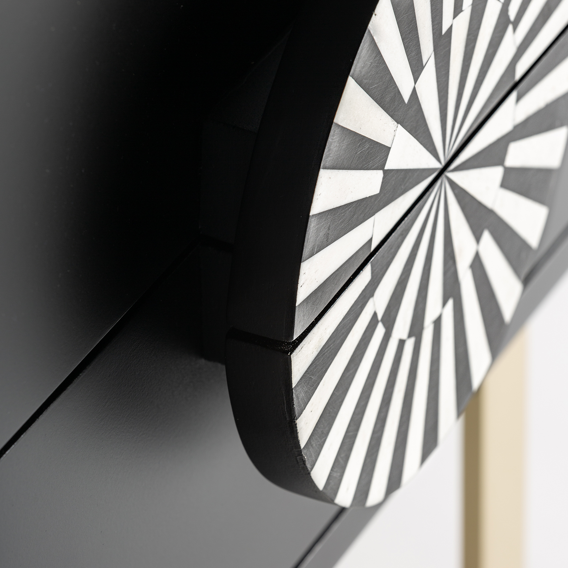 Испытайте вечное очарование журнального столика Gatsby от VICAL home. Эта прикроватная тумбочка в черном, белом и золотом цветах в стиле Гэтсби, изготовленная из железа с изысканными деталями из кости, является данью роскоши прошлых лет. Размерами 50x35x61 см это идеальный предмет, который придаст вашему пространству нотку изысканности и загадочности.