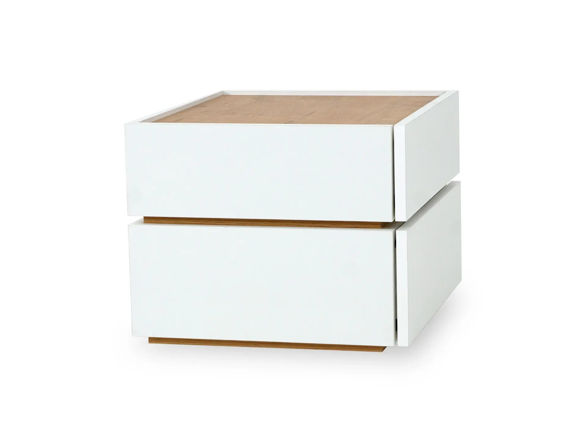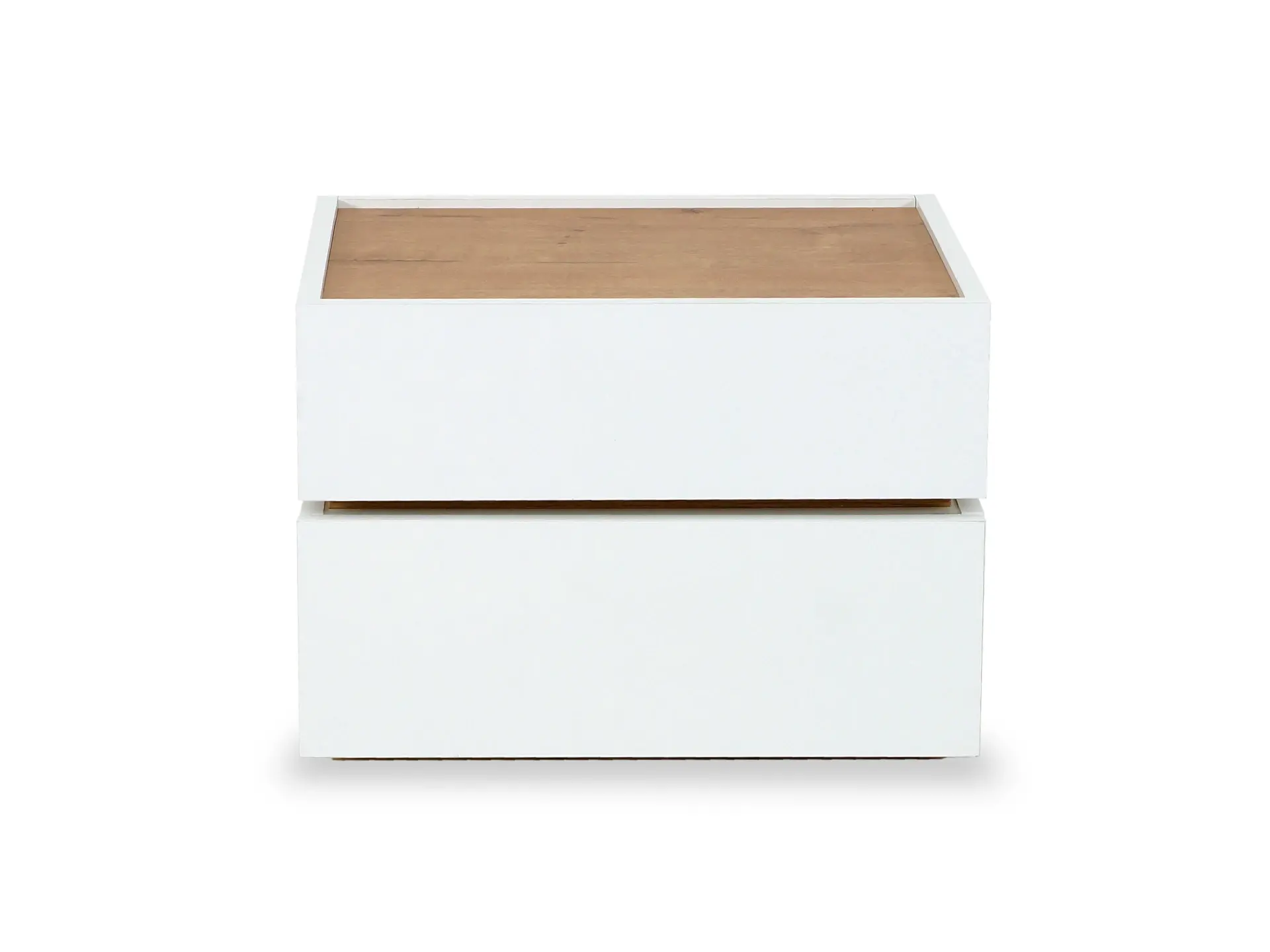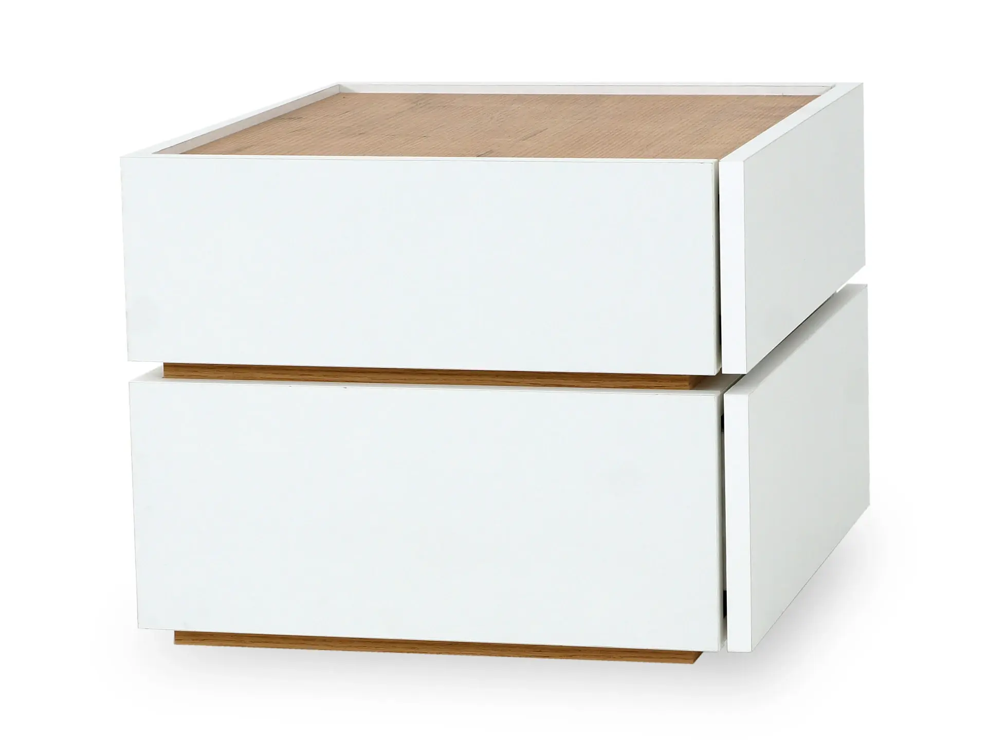 Тумба прикроватная с двумя ящиками. Выполнена из ЛДСП, дно ящиков ДВПО. Ящики на скрытых направляющих Push to open. Наличие фетровых подпятников.