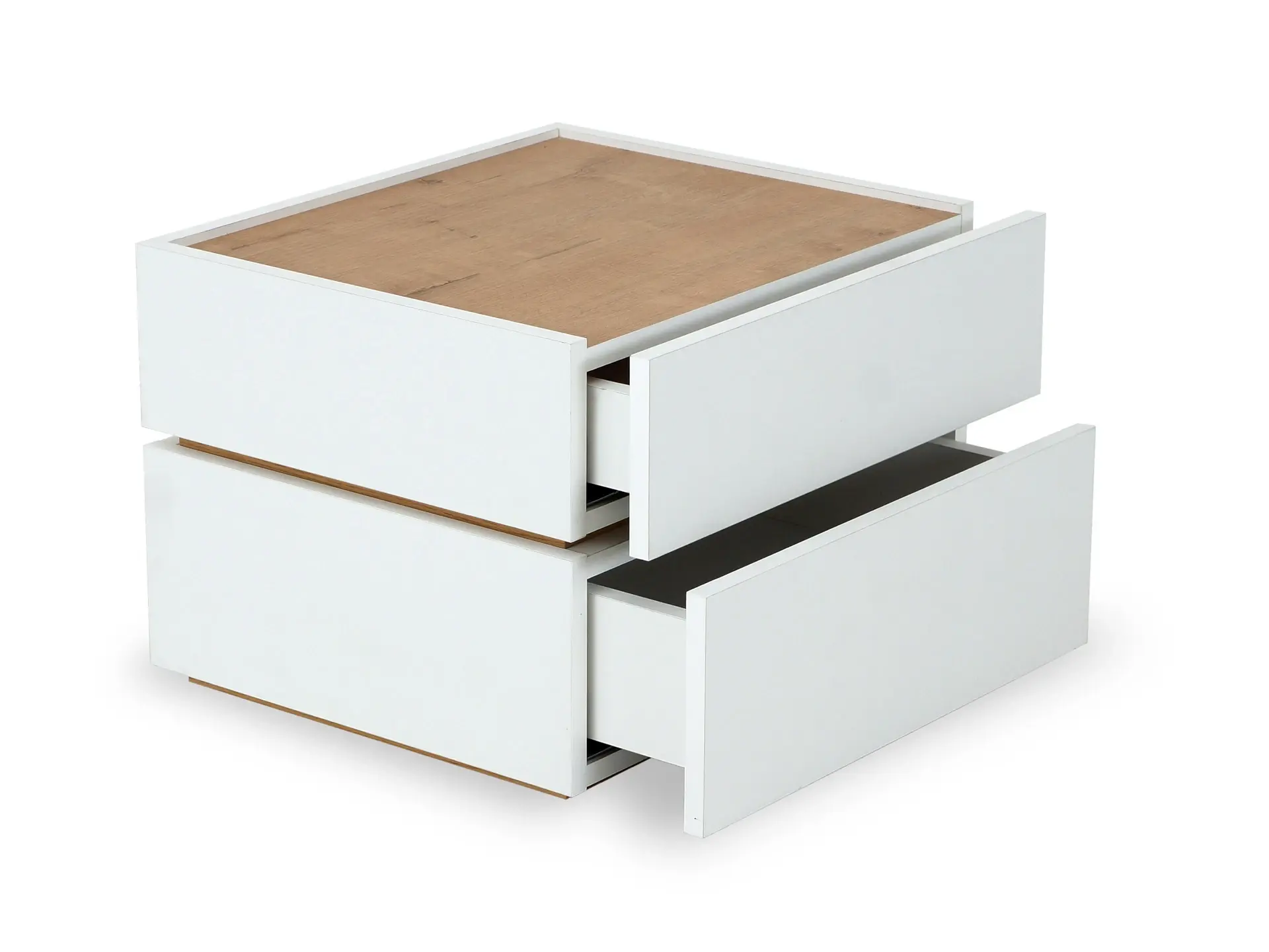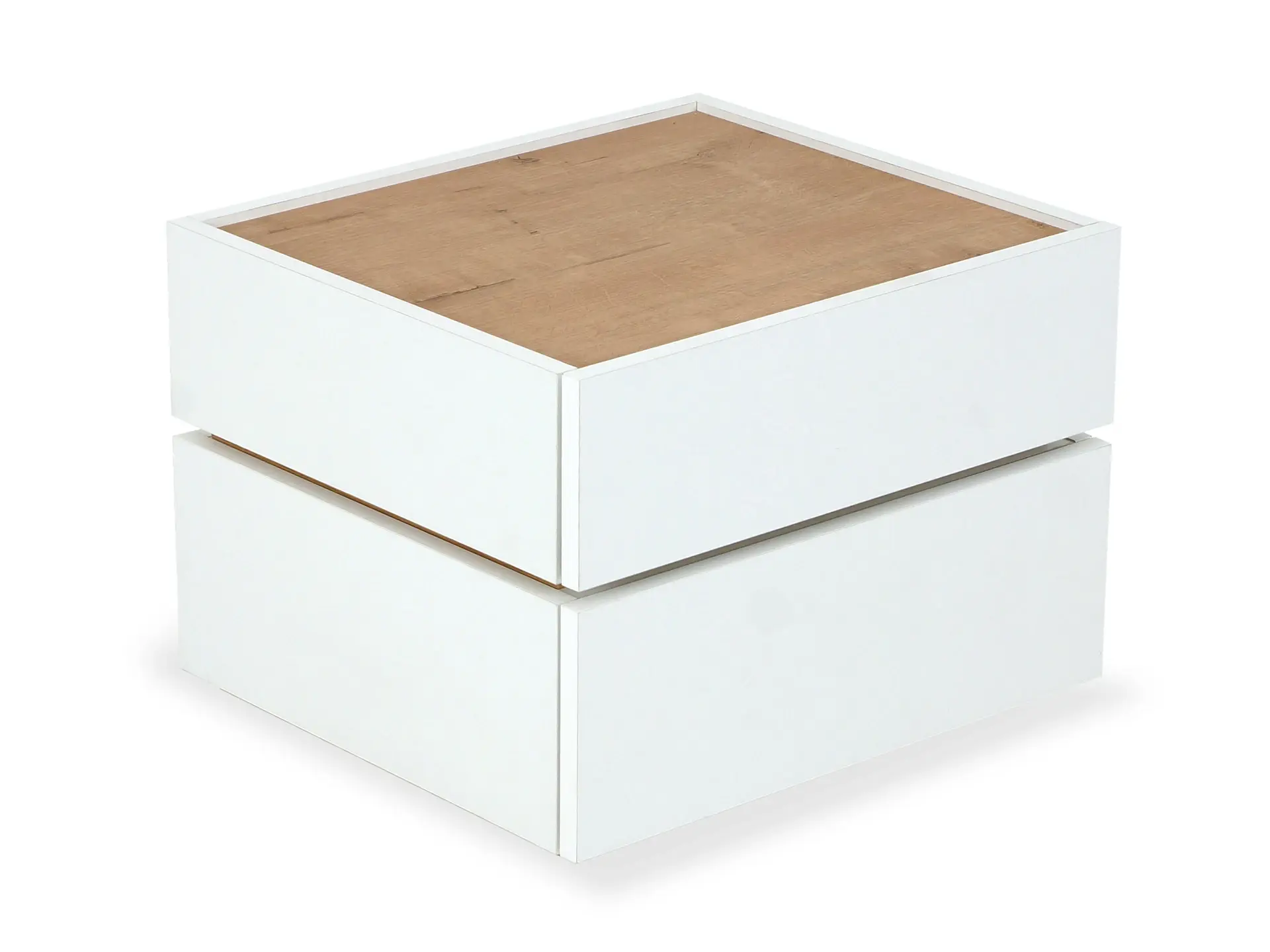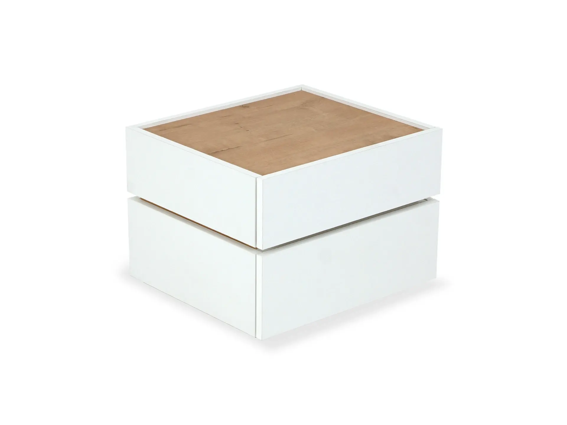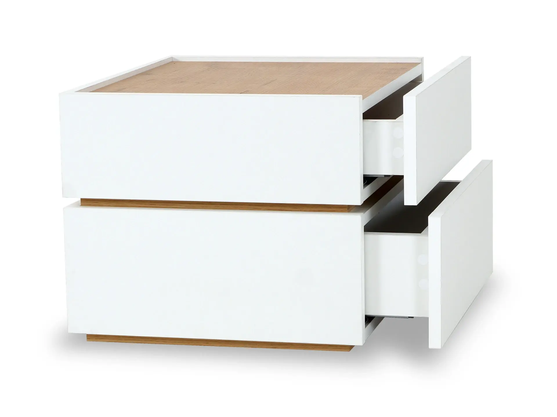 Тумба прикроватная с двумя ящиками. Выполнена из ЛДСП, дно ящиков ДВПО. Ящики на скрытых направляющих Push to open. Наличие фетровых подпятников.