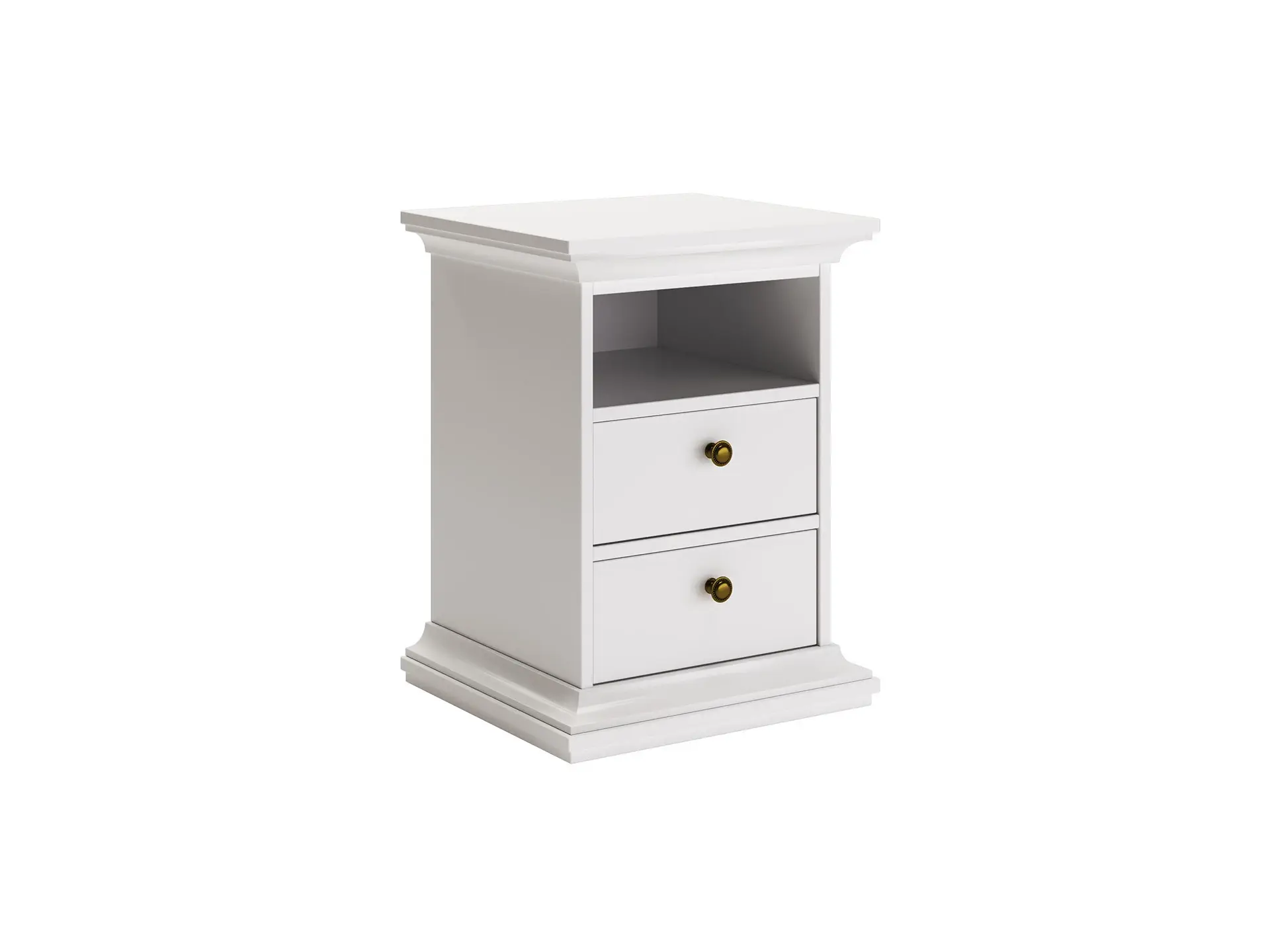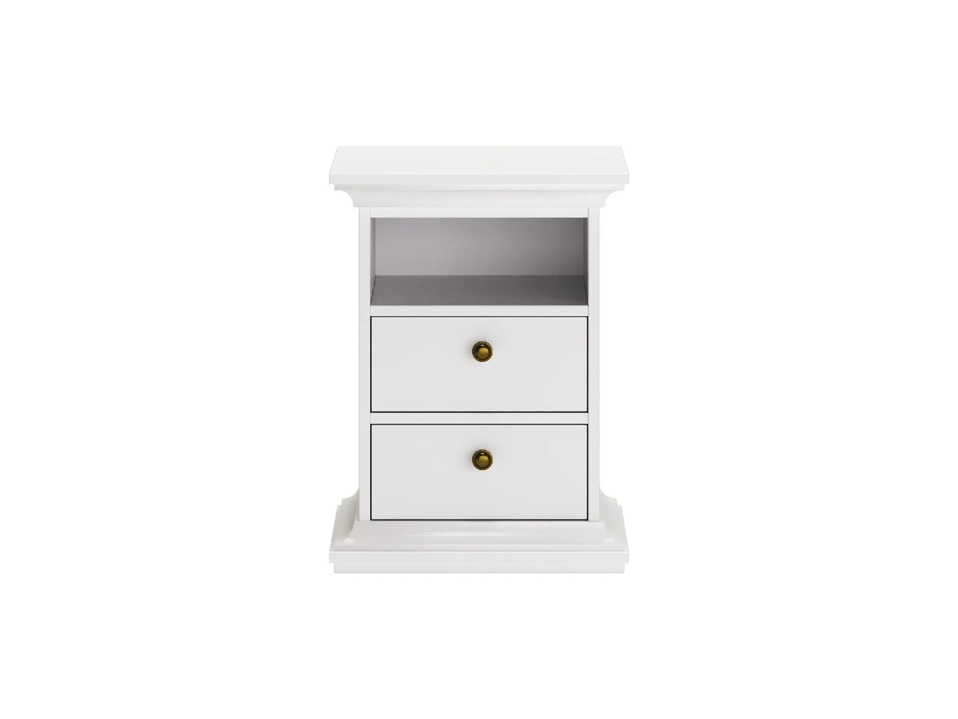 Тумба Reina с полкой и двумя выдвижными ящиками обладает лаконичным дизайном и широкими функциональными возможностями. В ней легко организовать хранение различных вещей, которые удобно иметь под рукой: косметика, парфюмерия, гаджеты, принадлежности для сна, белье. Поверхность подходит для использования в качестве столешницы, на которую можно поставить лампу, зеркало, часы, декор, книгу. Цокольное основание отвечает за устойчивость и надёжность конструкции. Ящики имеют тихий и плавный ход.