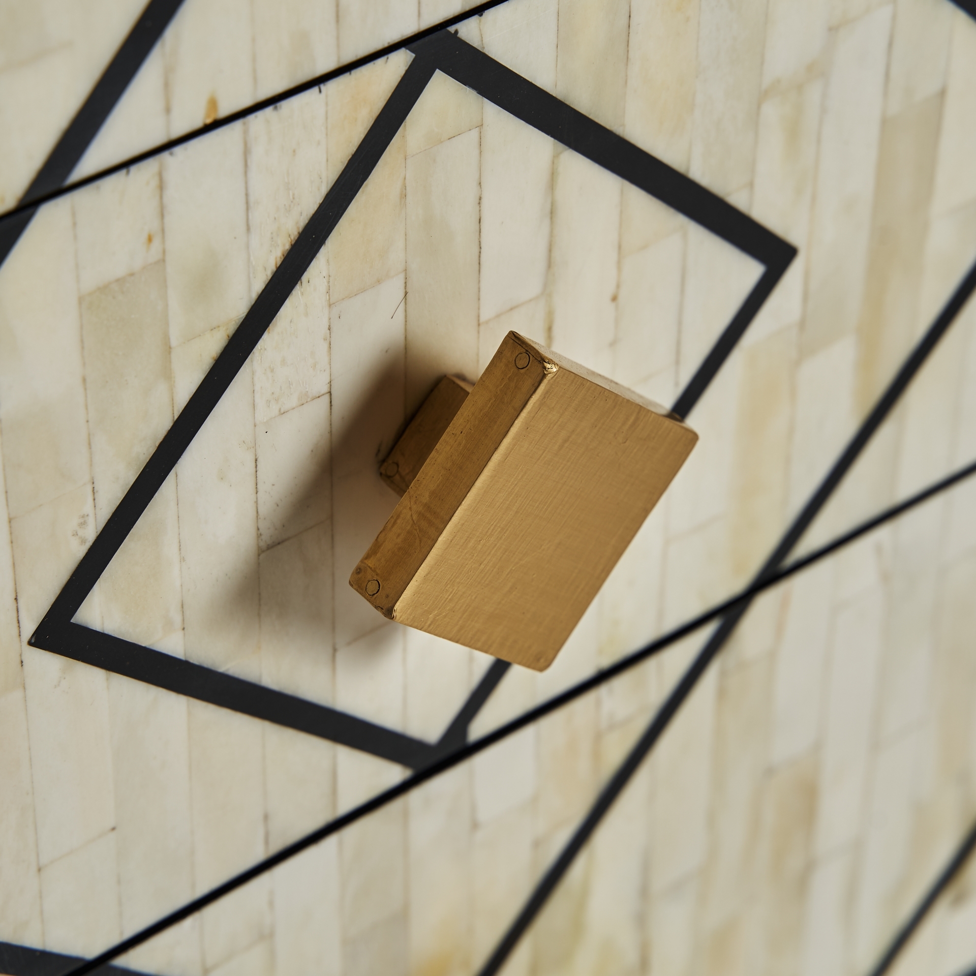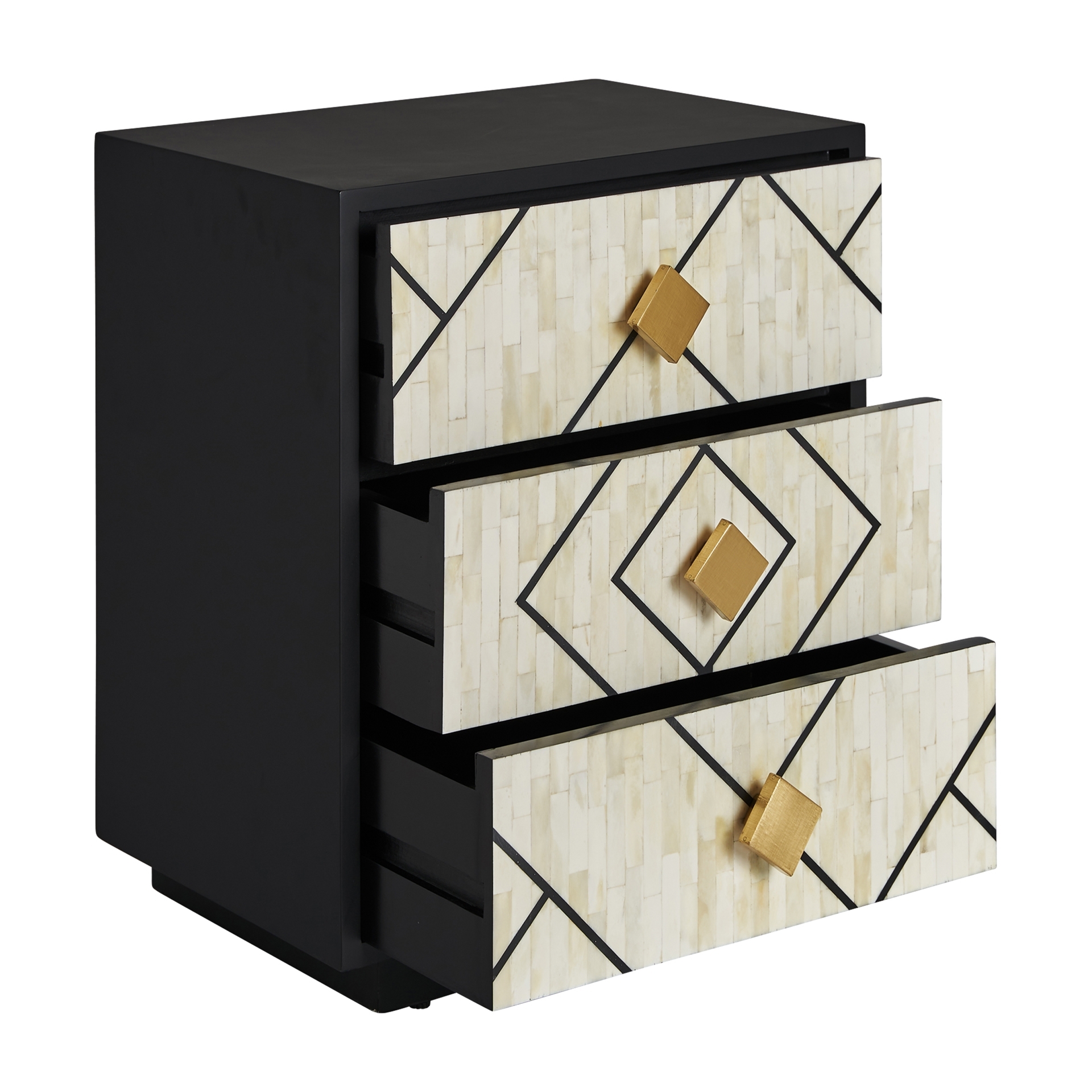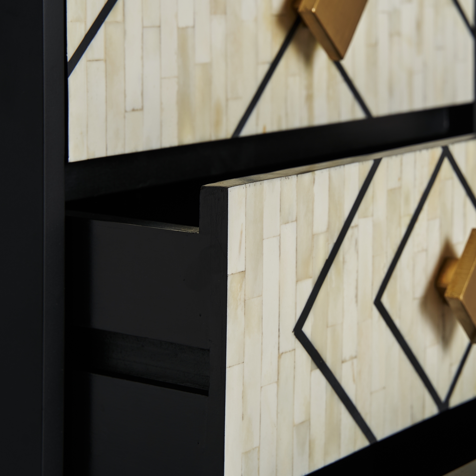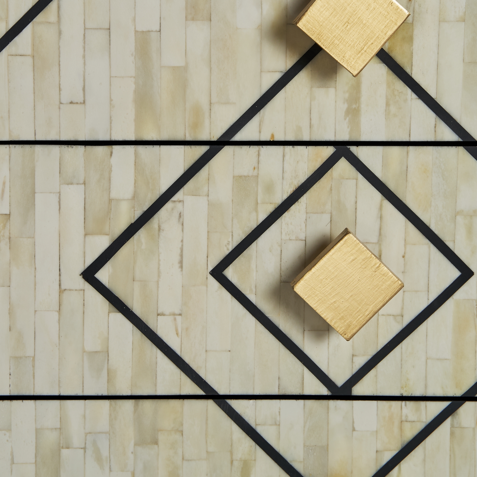 Тумбочка, цвет черный/белый/золотой, стиль арт-деко. Изготовлен из железа в сочетании с костью.