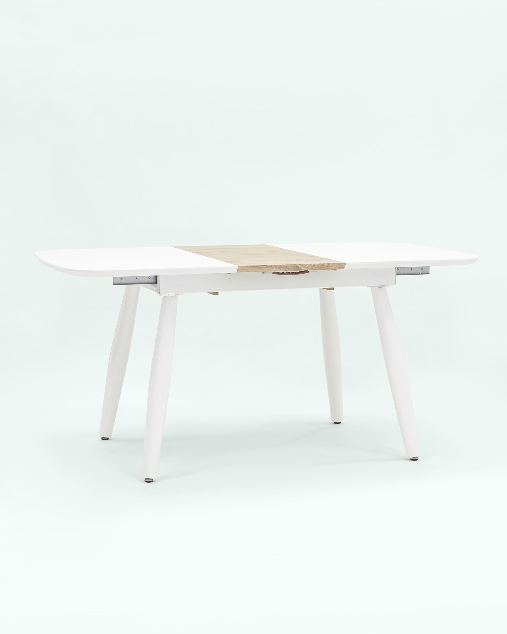 Дополнительная вкладка стола выполнена из МДФ с бумажным шпоном цвета беленого дуба. На вкладке предусмотрена петля для комфортного открытия стола одной рукой.