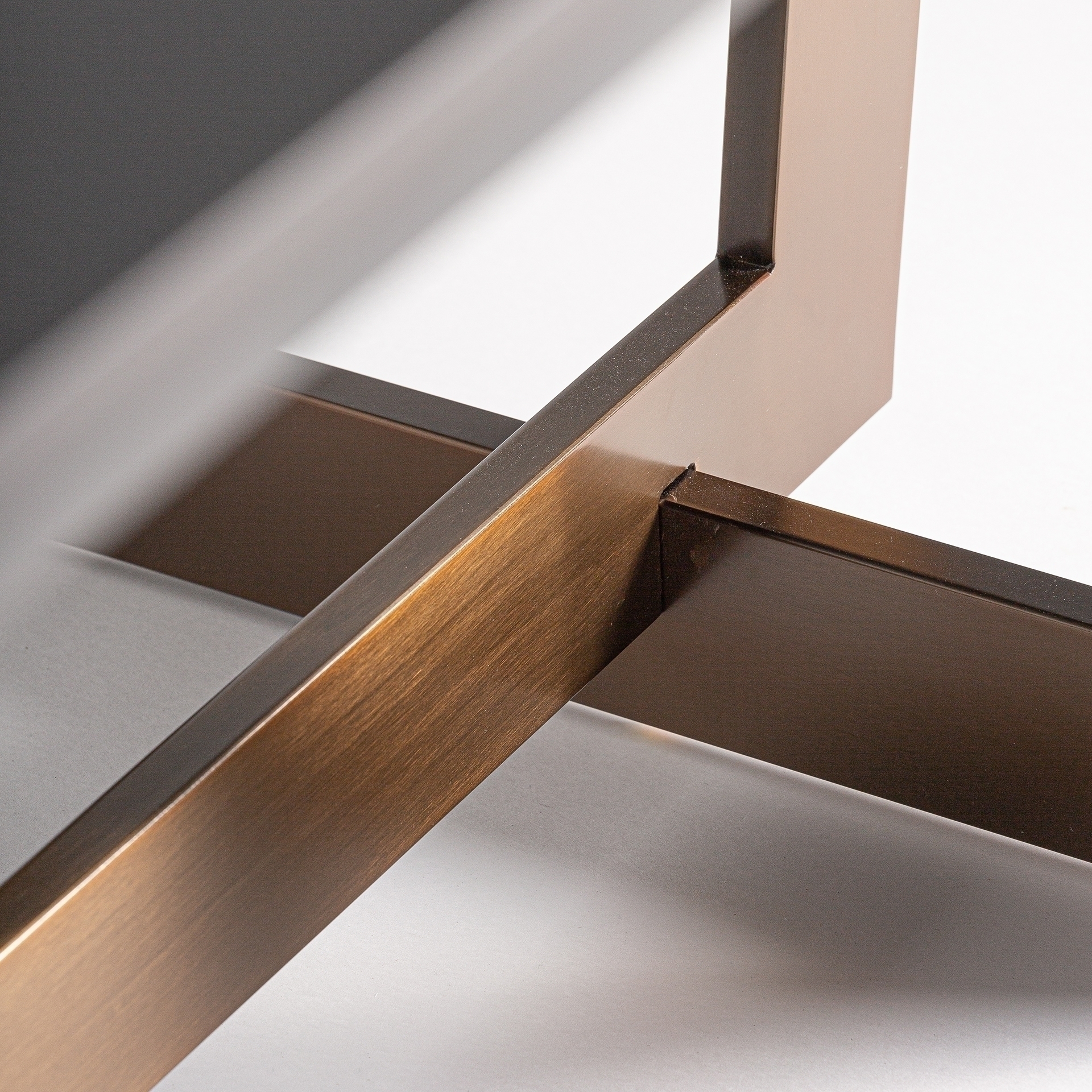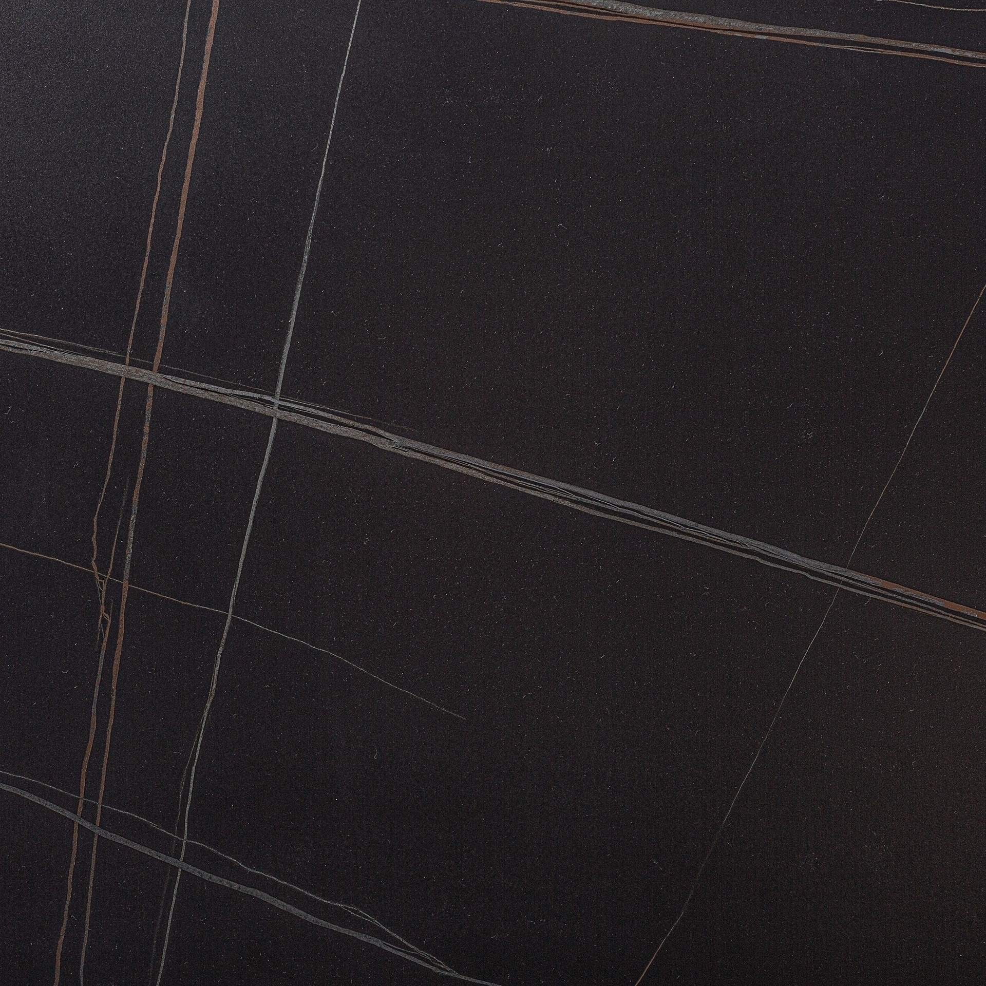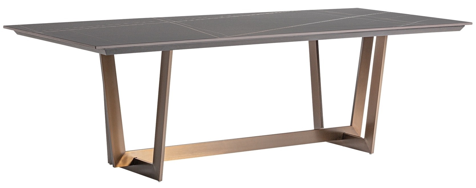 Обеденный стол Tremp, черный/золотой, стиль арт-деко. Изготовлен из камня в сочетании с нержавеющей сталью. Съемное изделие.