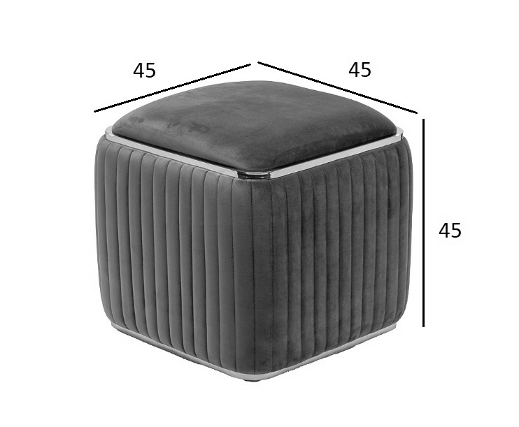 Велюровый пуф из серии Glarus - элегантность формы, сочетание гладкого и волнистого велюра, металлической отделки. Велюровый пуф с эффектным декором из «золотого» металла украсит собой интерьер гостиной, холла, спальни, прихожей. Он станет стильной компанией дивану и креслам из серии Glarus. Компактный квадратный пуф полностью отвечает концепции стиля ар-деко – обивка из мягкого велюра, изысканный блеск отделки из нержавеющей стали, современная форма. Он занимает минимум места в помещении, но при этом приносит максимум пользы – добавляет уюта, выполняет функции дополнительного сидения, придает обстановке изысканности и шика. Вы можете купить коричневый пуф в сочетании с другой мебелью в стилистике современного ар-деко. Сочетается с двухместными диванами 102AN-DIV-1302-KOR, трехместными 102AN-DIV-1303-SER и креслами 102AN-KRES-1301-SER.