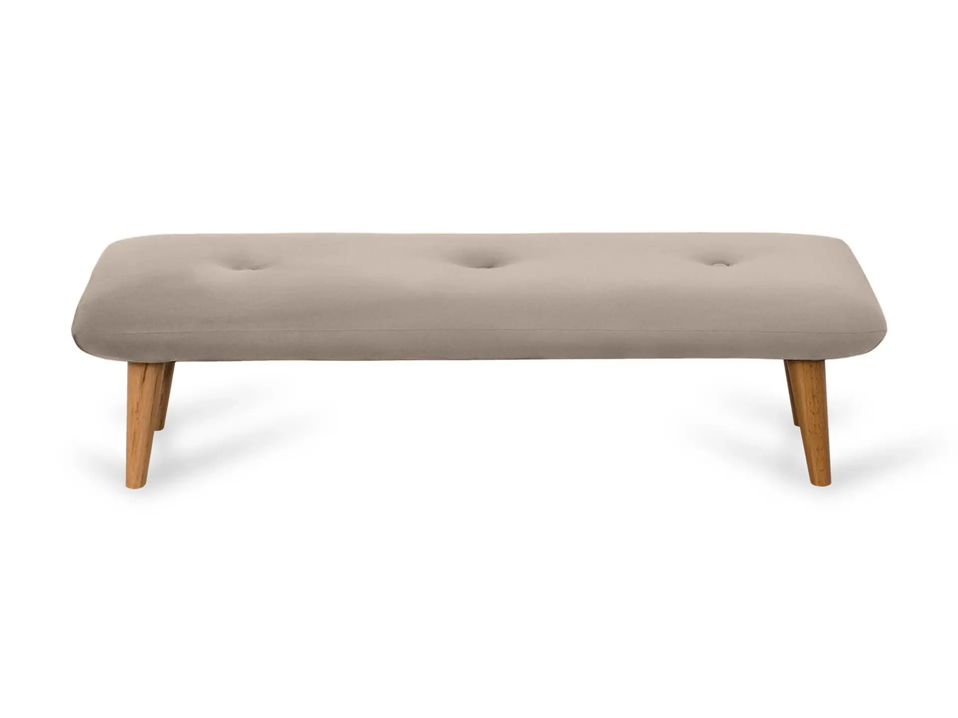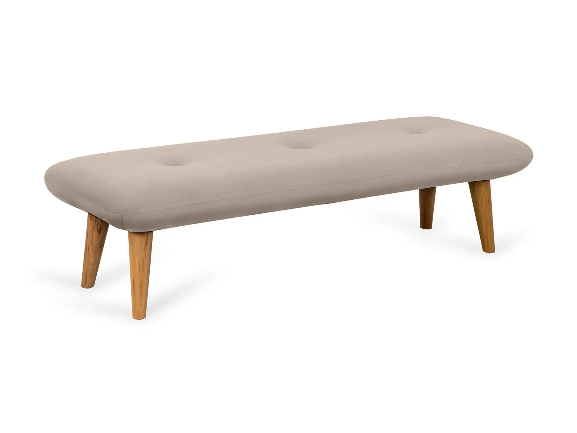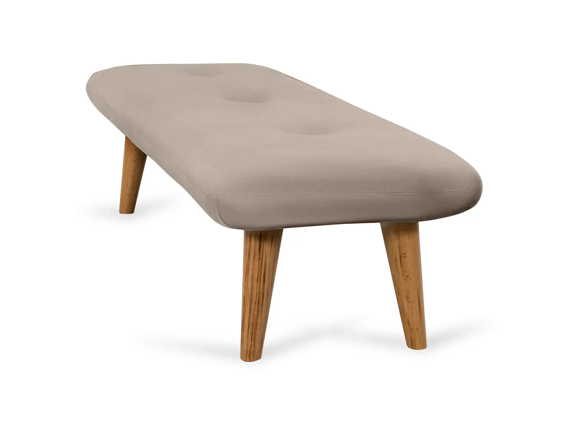 Невысокие (200 мм) ножки изготовлены из массива бука, дополнены фетровыми подпятниками, благодаря которым они не царапают напольное покрытие. Каркас выполнен из брусков дерева хвойных пород. А для максимального комфорта сидящего мы добавили в качестве наполнителя пенополиуретан марки ST (22/36) и синтепон – упругие, удобные, не теряющие формы даже при активном использовании мебели. Чехол из приятной на ощупь фактурной ткани несъёмный, декорирован пуговицами.