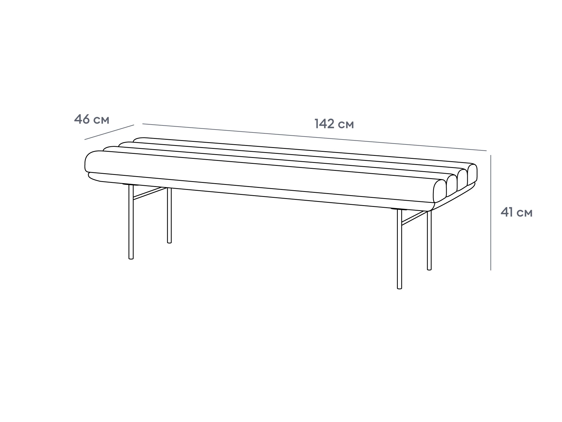 Благодаря лаконичному внешнему виду, гармонично подружится с корпусной и мягкой мебелью. Рельефное сиденье, словно из мягких «бревнышек», внесет в интерьер разнообразие. Изящные, но прочные металлические ножки поддержат ощущение невесомости, воздушности. Вы можете выбрать нужный цвет обивки. И сделать банкетку Mede как ярким акцентом, так и спокойной деталью для комфорта, гостеприимства в домашнем или бизнес-пространстве.