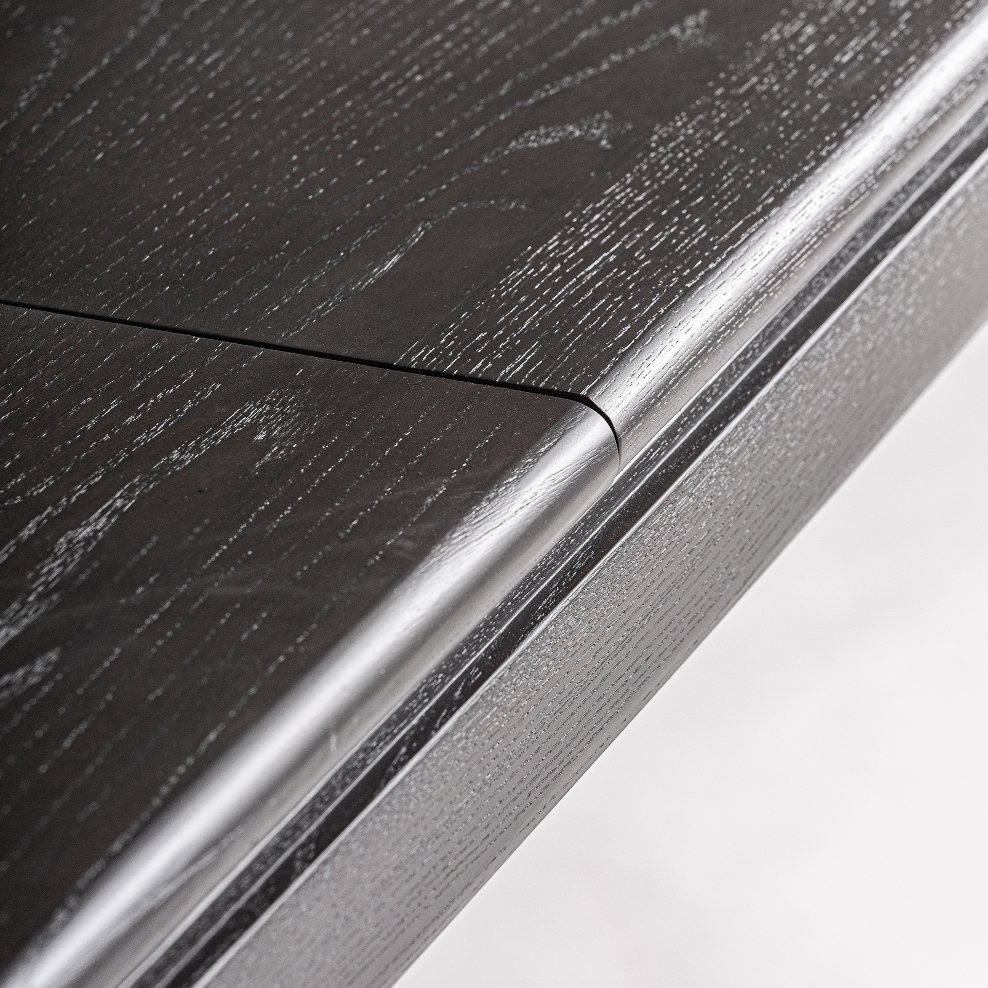 Классический раздвижной стол Buken, изготовленный из черного ясеня в сочетании с деревянным шпоном и каучуковым деревом. Расширяемый продукт.
