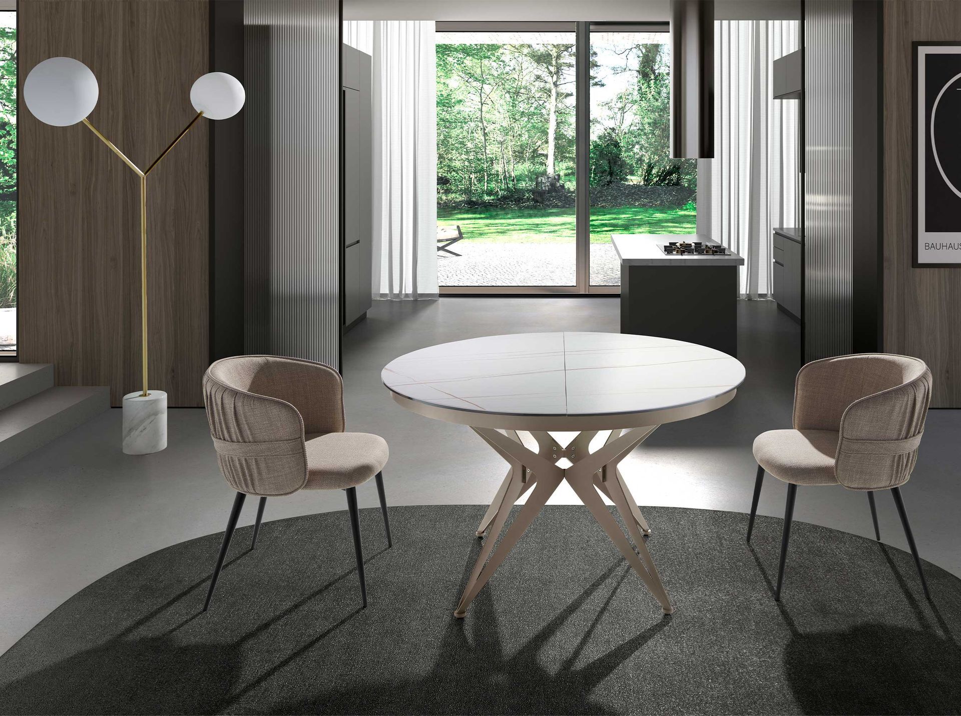 Круглый раздвижной обеденный стол 1119/MC22018DT из мраморной керамики и стали Испания