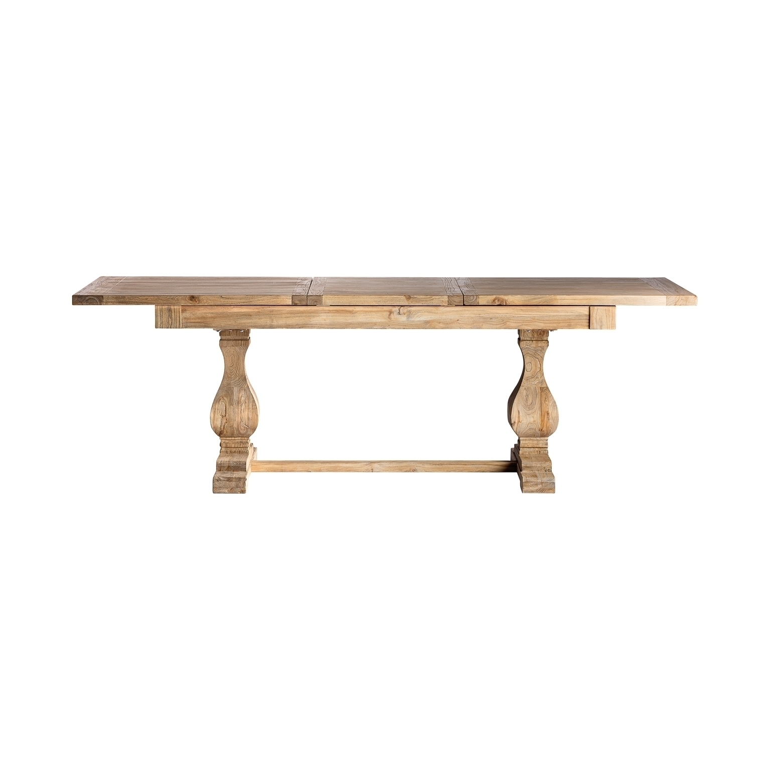 Прямоугольный раздвижной стол Berca, натуральный цвет, классический стиль. Изготовлен из переработанной древесины вяза. Съемное, выдвижное изделие.
