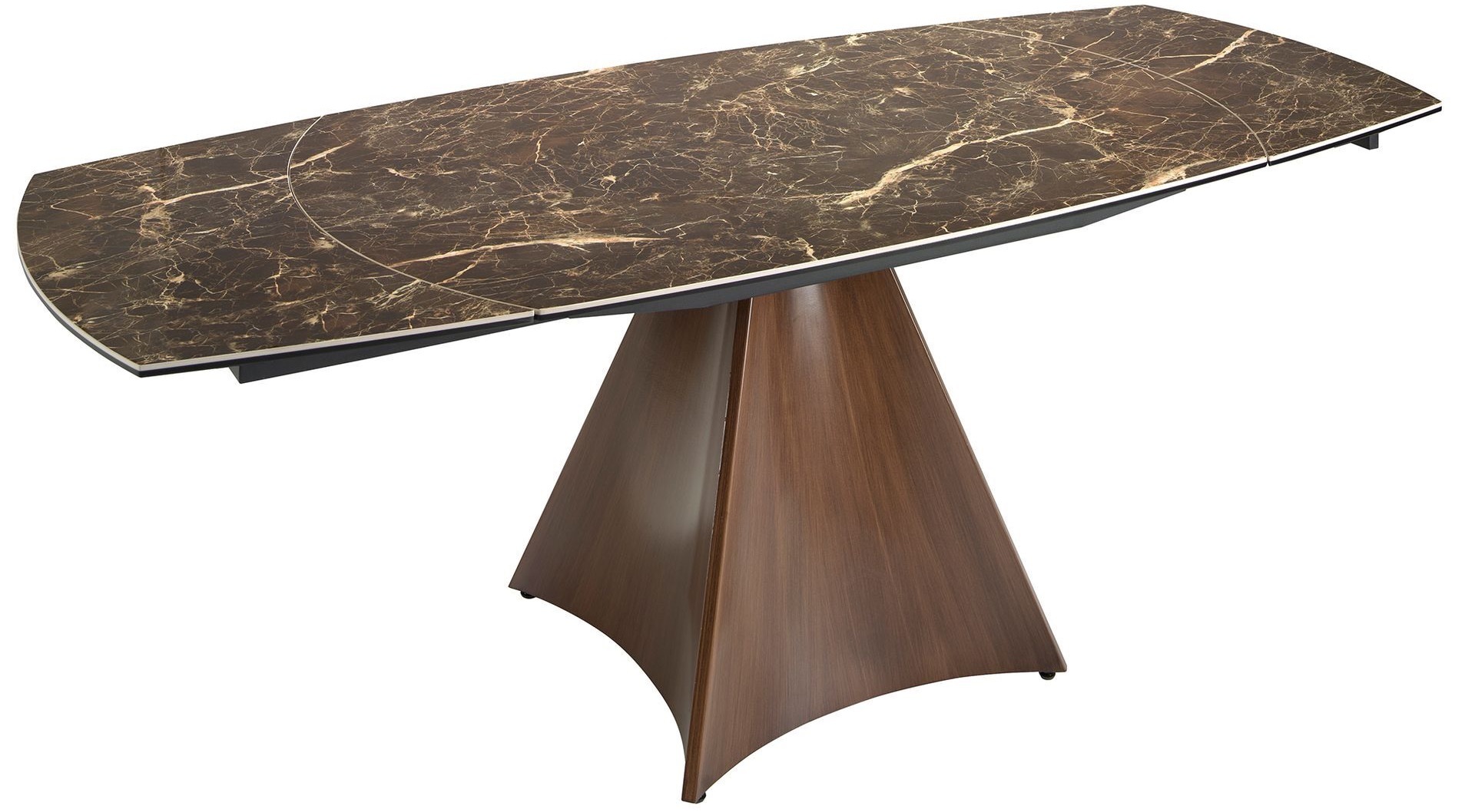 Раздвижной стол 1113/MC22181DT от фабрики Angel Cerda – овальная мраморная столешница и оригинальная стойка. Раздвижной обеденный стол 1113/MC22181DT добавит вашей столовой стиль и индивидуальность. Деревянная стойка и коричневый мрамор – идеальный тандем, который сумеет преобразить каждую вашу сервировку. Его раздвижная конструкция позволит разместить больше гостей. Поэтому этот персонаж будет всегда главным в момент ваших застолий! Стол овальной формы, имеет сборную конструкцию. Столешница изготовлена из керамогранита коричневого цвета. Сверху нанесен глянцевый слой защиты от мелких порезов, сколов. Стойка изготовлена из дерева и покрыта шпоном натурального ореха. Тон и рисунок древесины на каждом изделии уникальны. Снизу установлены накладки, которые защищают древесину от повреждений и улучшают устойчивость. Чтобы увеличить площадь столешницы, необходимо раздвинуть края в противоположные стороны и извлечь дополнительную секцию. Размеры стола: ширина – 135/205 см, глубина – 90 см, высота – 75 см. Вес изделия – 137 кг. Потребуется самостоятельная сборка. Инструкция и крепеж включены в комплектацию. Стол предназначен только для эксплуатации в помещении.