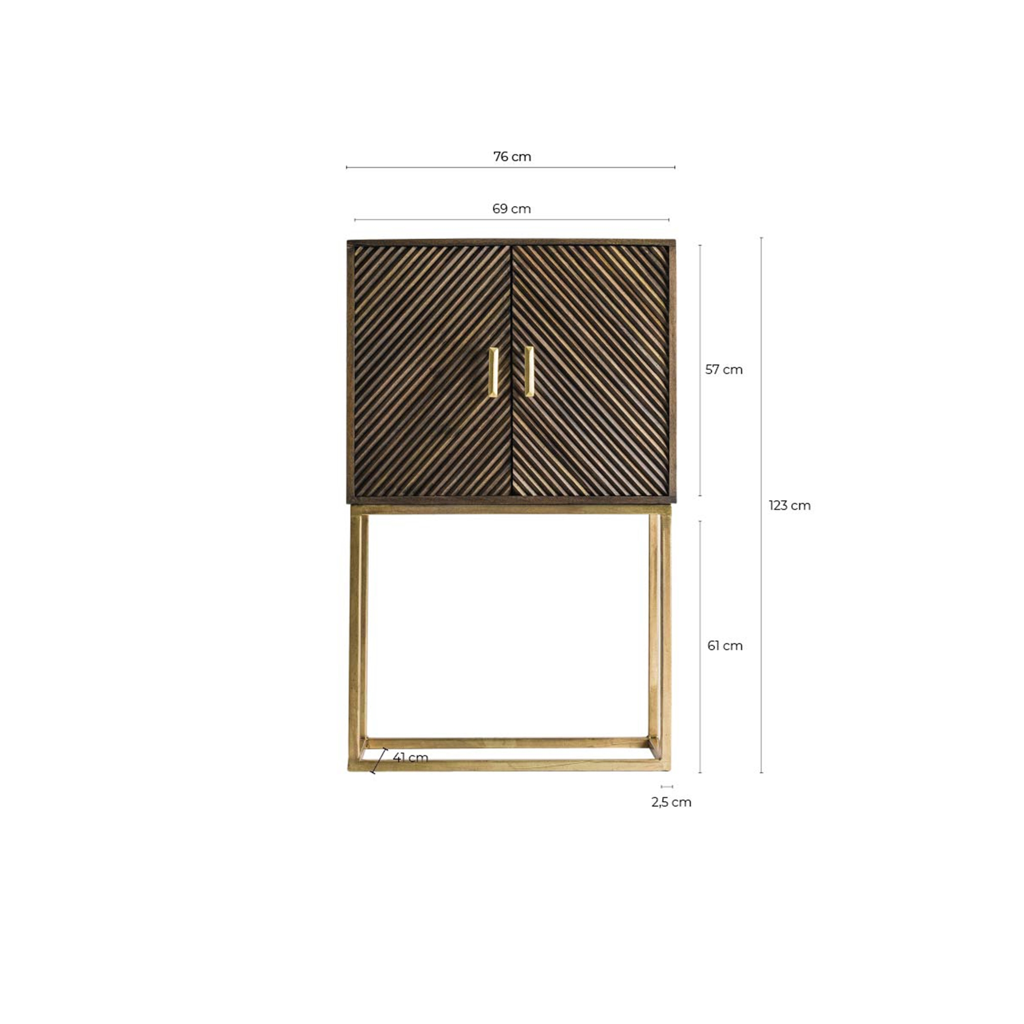 Мебель Kraj Bar от VICAL home станет идеальным дополнением вашего дома. Этот барный шкаф, изготовленный из железа и выполненный в коричневых и золотых тонах, придаст любому пространству элегантный и изысканный вид. Размеры 76x41x124 см обеспечивают оптимальное хранение напитков и аксессуаров. Празднуйте стильно вместе с Kraj.