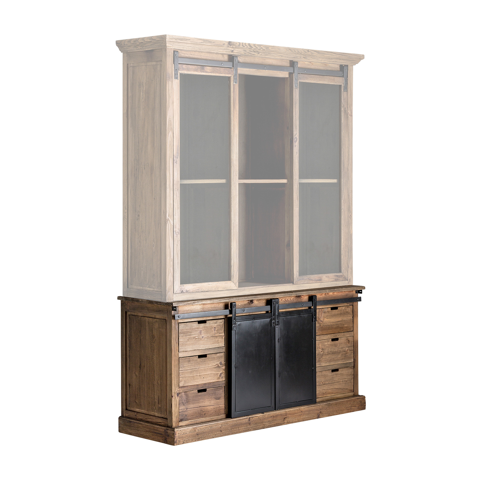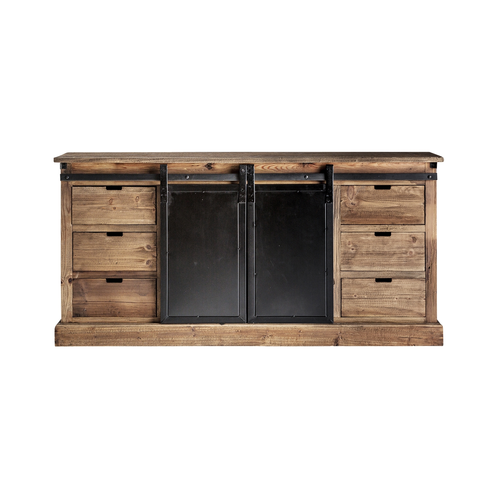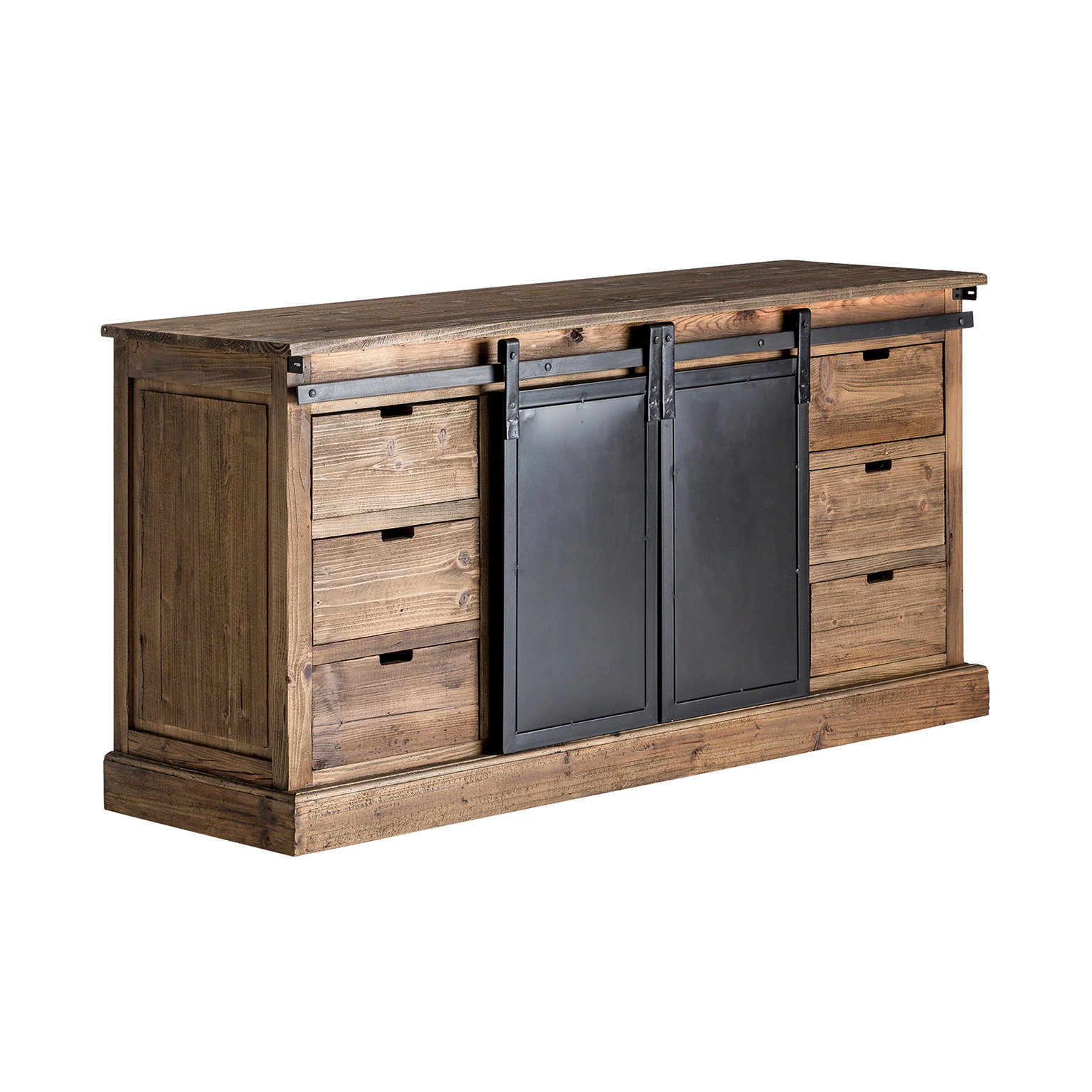 Буфет IKAST, цвет черный/натуральный, индустриальный стиль. Изготовлен из переработанной сосновой древесины.