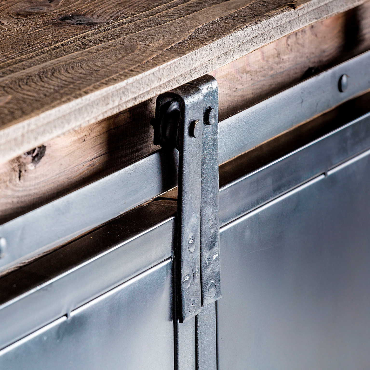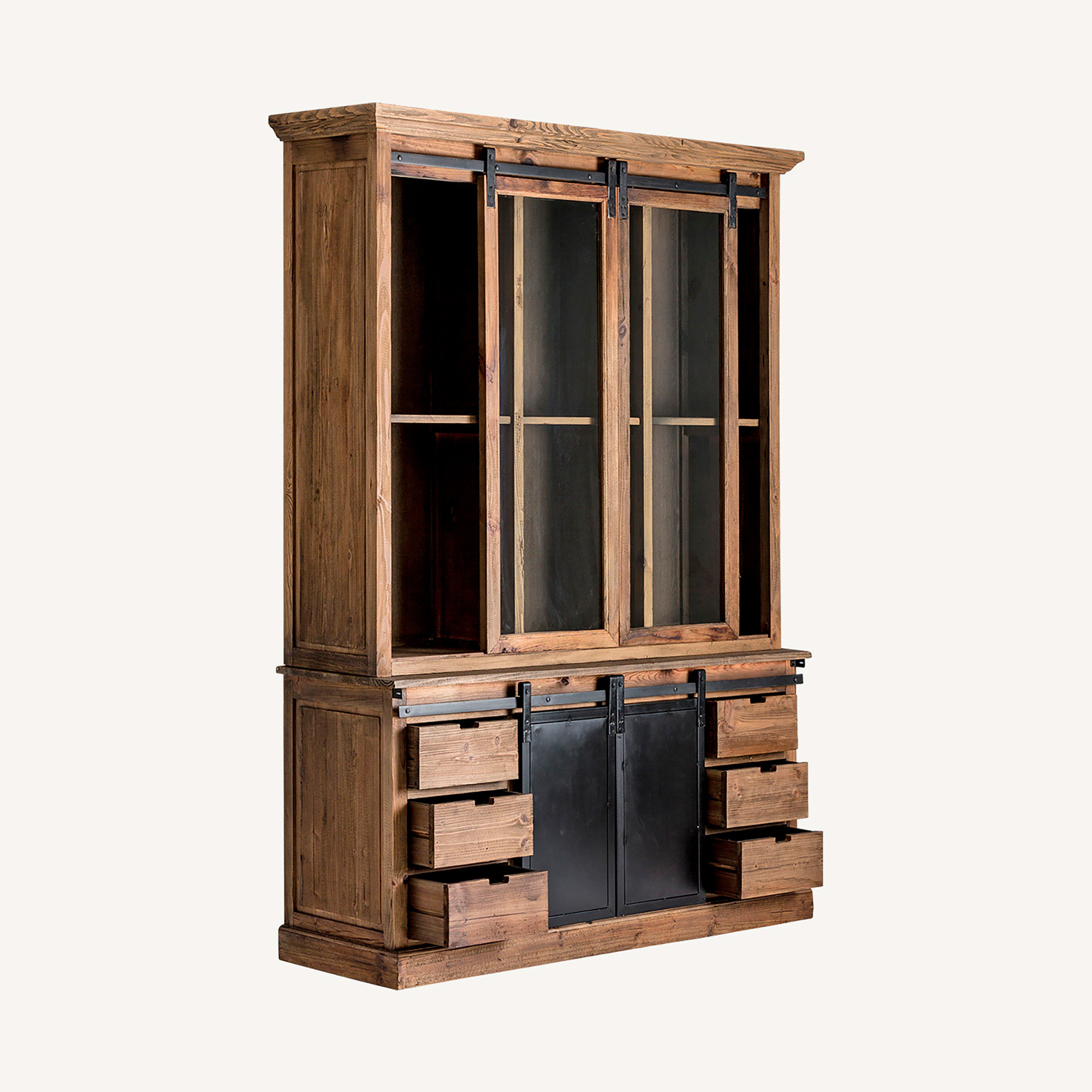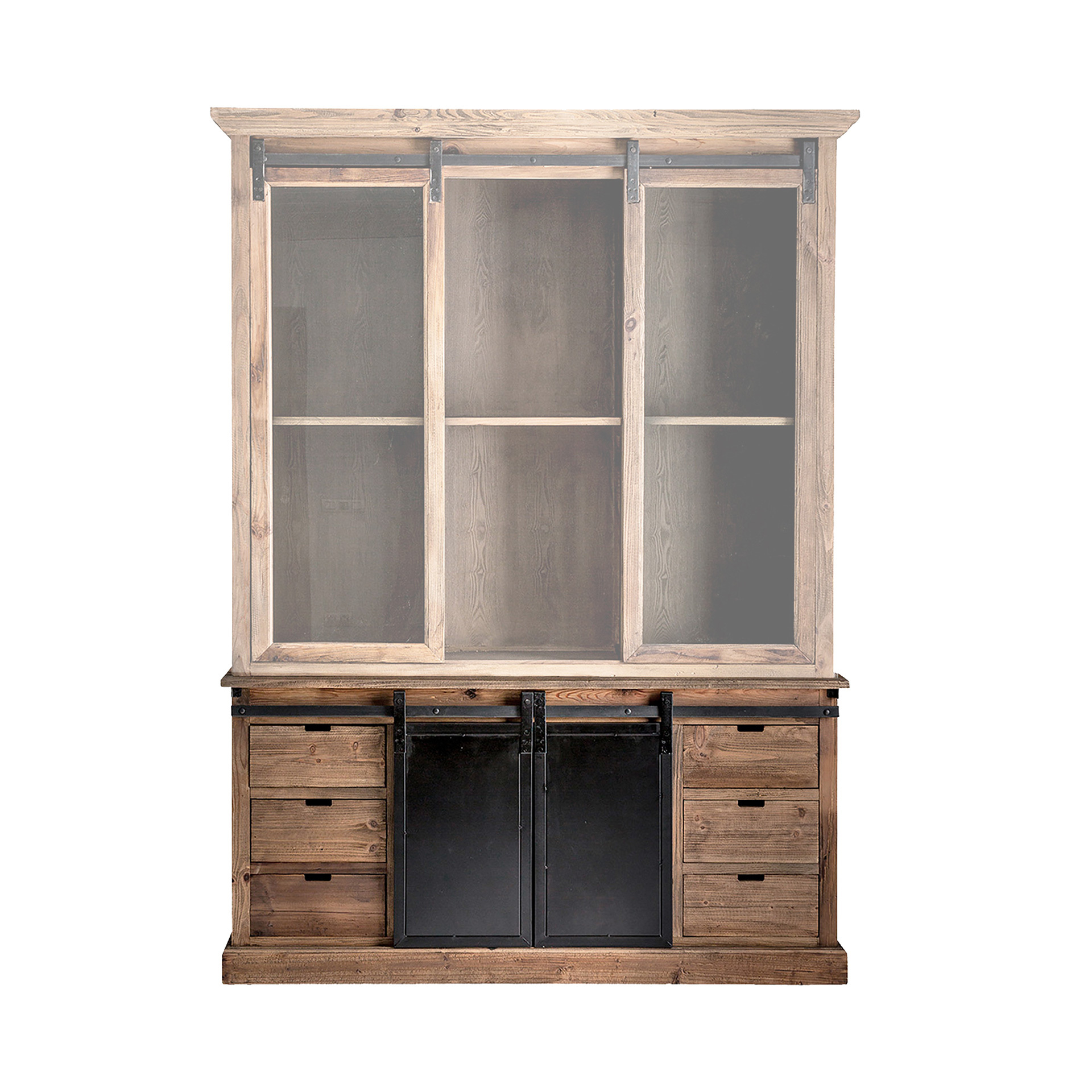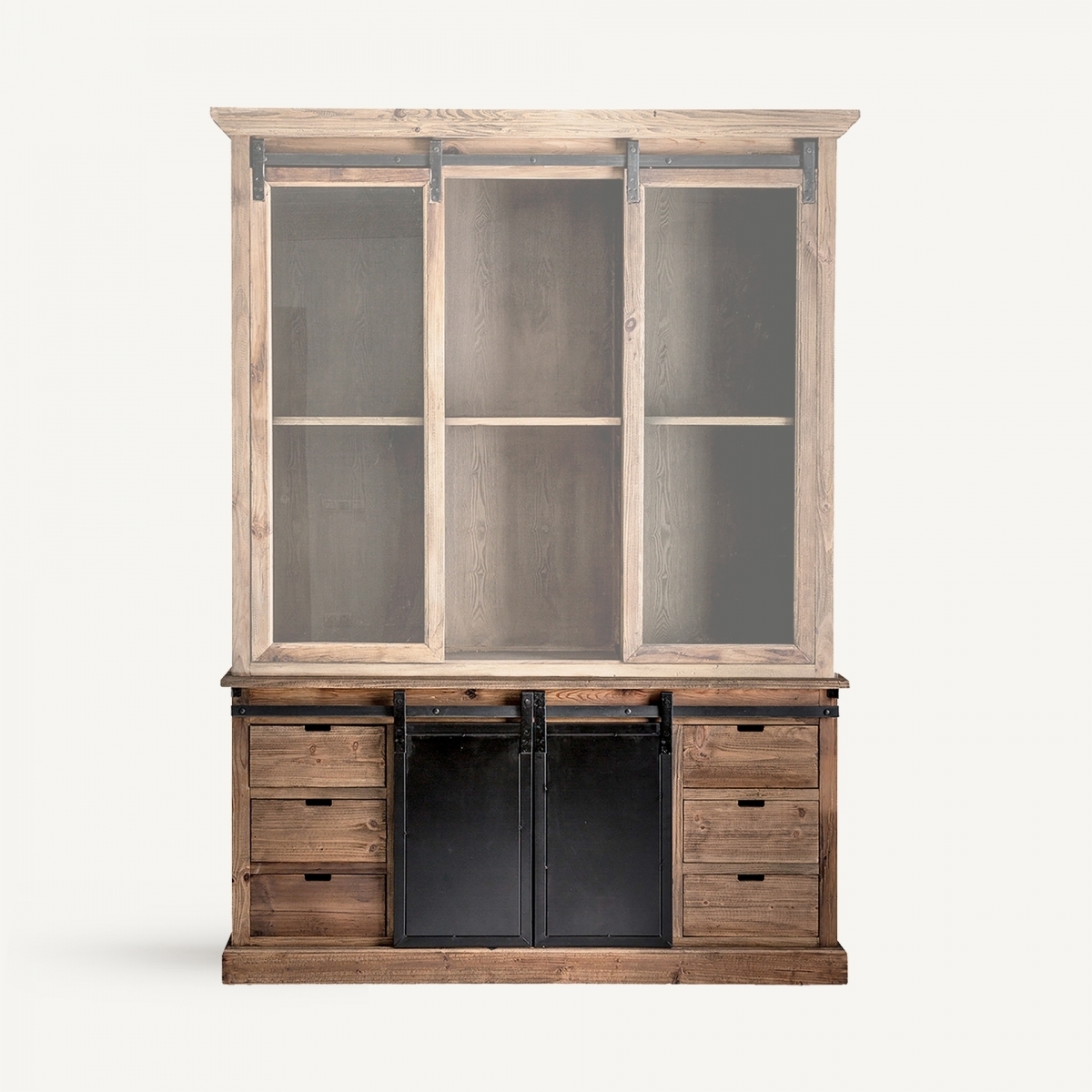 Буфет IKAST, цвет черный/натуральный, индустриальный стиль. Изготовлен из переработанной сосновой древесины.