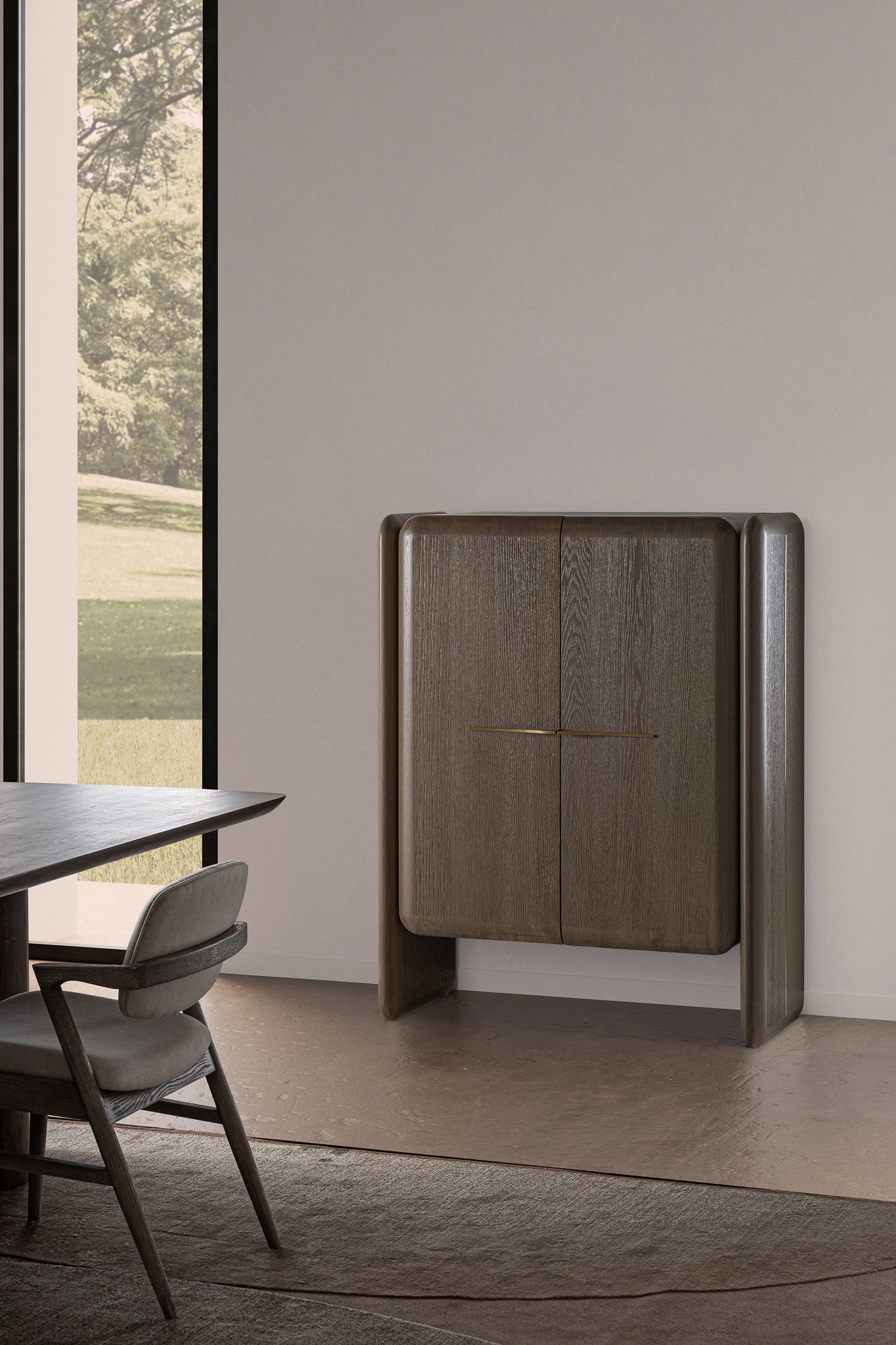 Буфет Ussel, коричнево-золотой, стиль арт-деко. Изготовлен из древесины дуба в сочетании с латунью. Съемное изделие. Ширина: 110 см, Глубина: 51 см, Высота: 142 см.