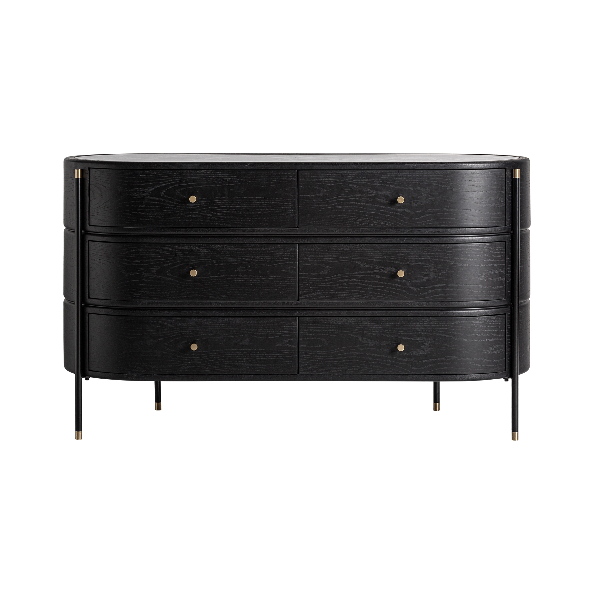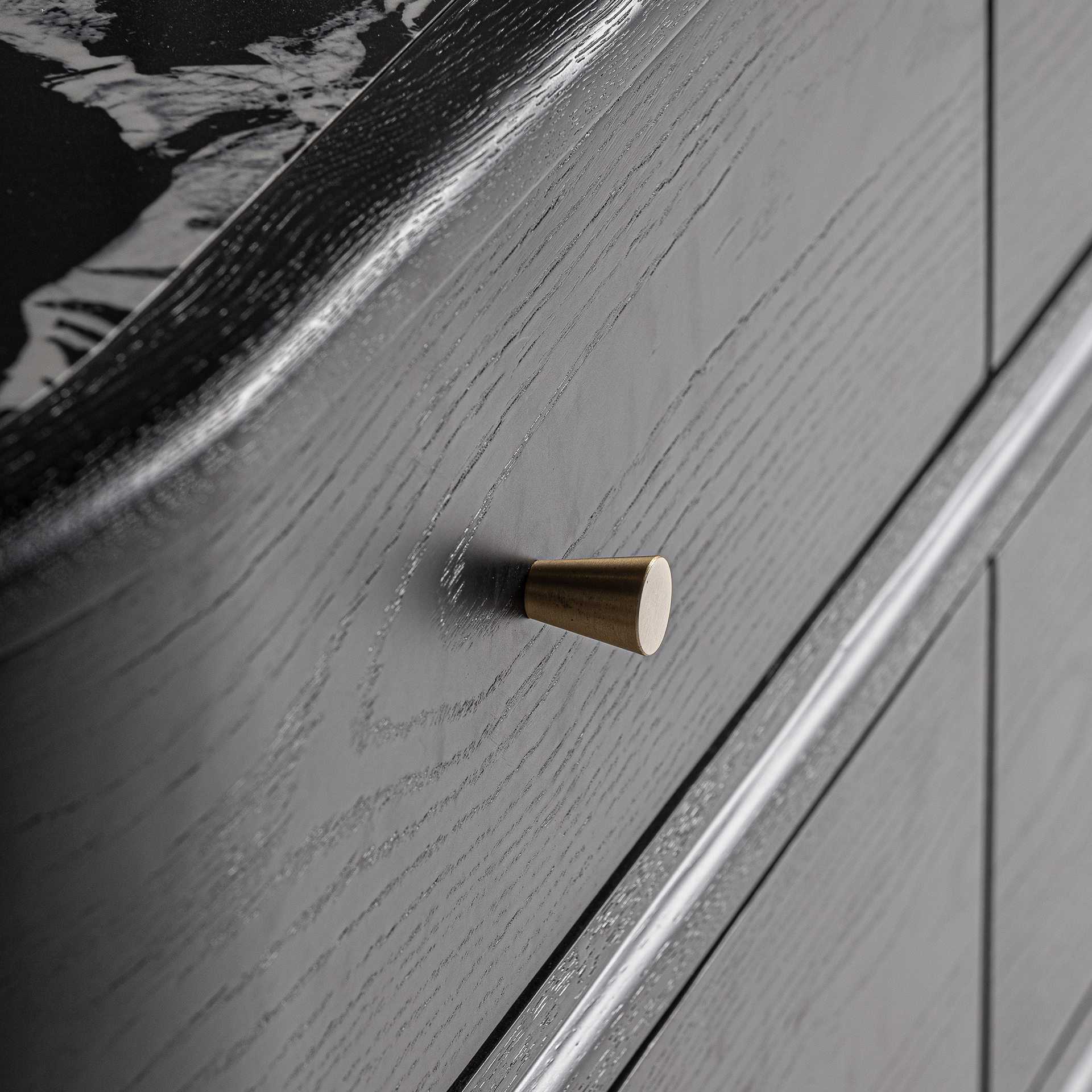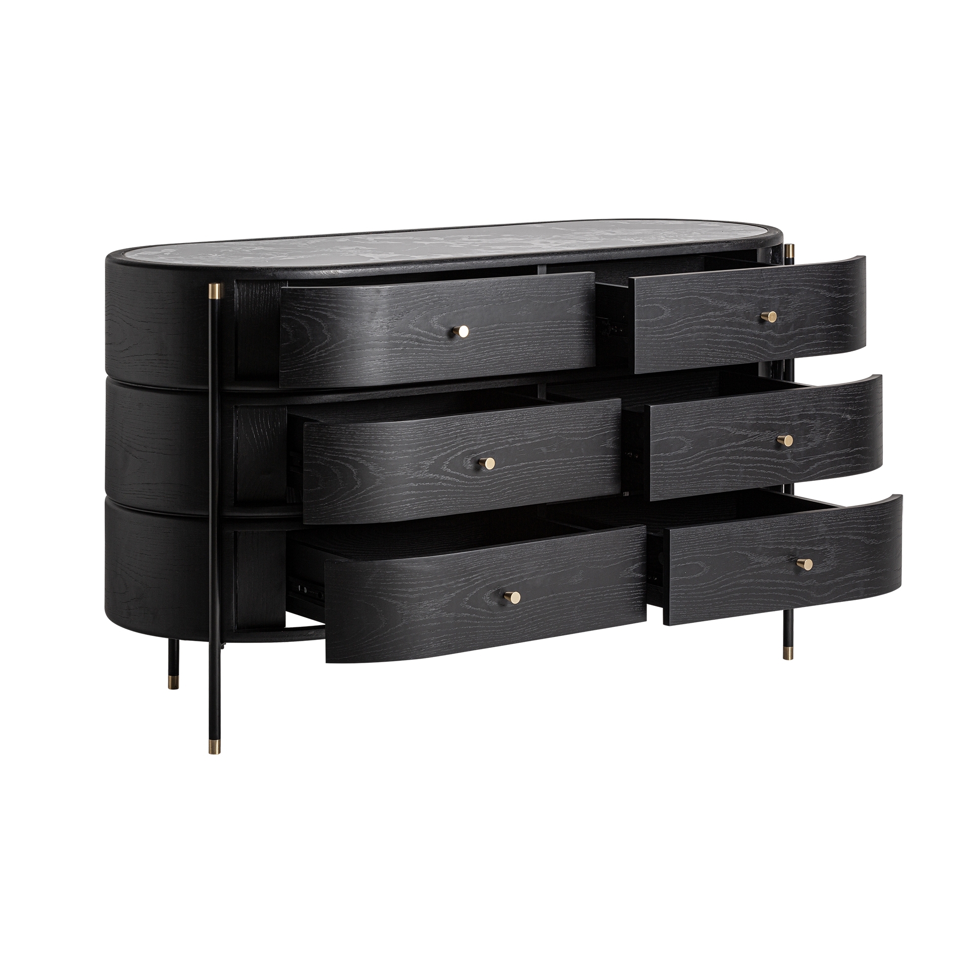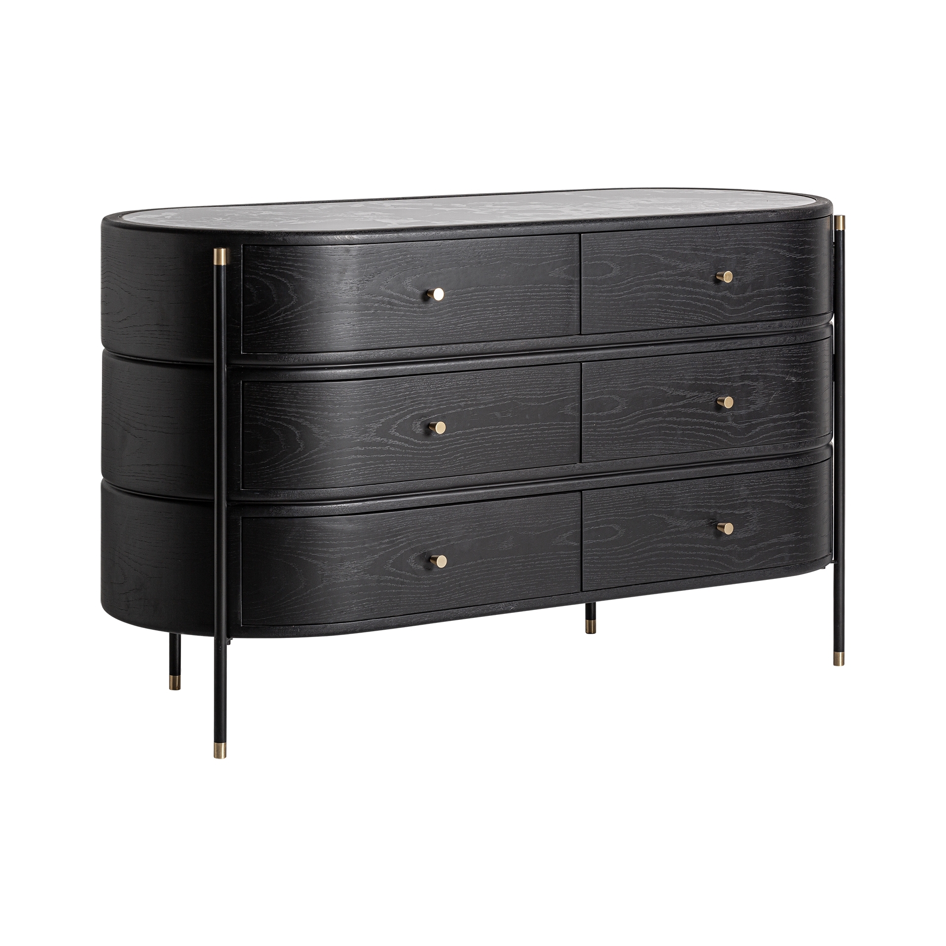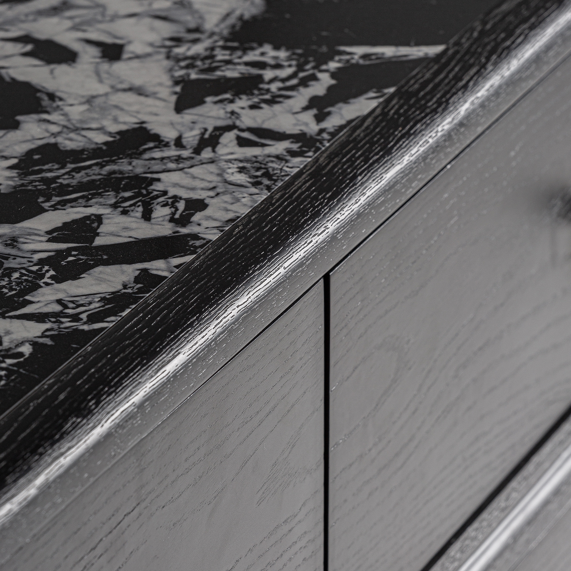 Комод Bilzen в современном стиле, изготовлен из черного дерева DM в сочетании с черной керамикой с печатной отделкой и черным железом.