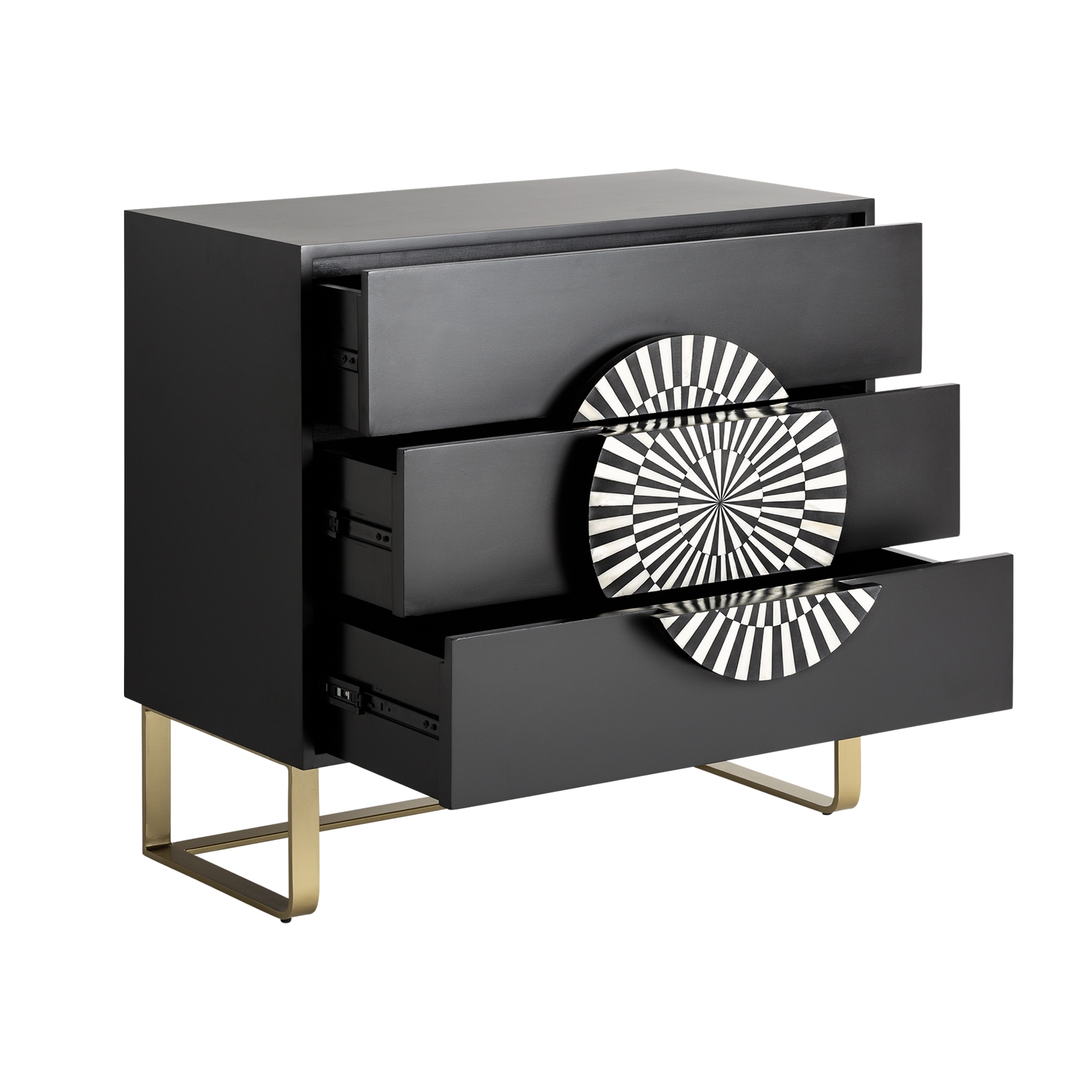 Вдохновитесь золотой эрой с комодом Гэтсби от дома VICAL. Этот двухцветный черно-белый дизайн, выполненный из железа и украшенный костью, отражает суть стиля ар-деко. Комод Gatsby в стиле ар-деко размером 90x45x86 см служит не только местом для хранения вещей, но и предметом, который перенесет вас во времена великолепия и гламура. Сделайте смелое заявление с Гэтсби у себя дома.