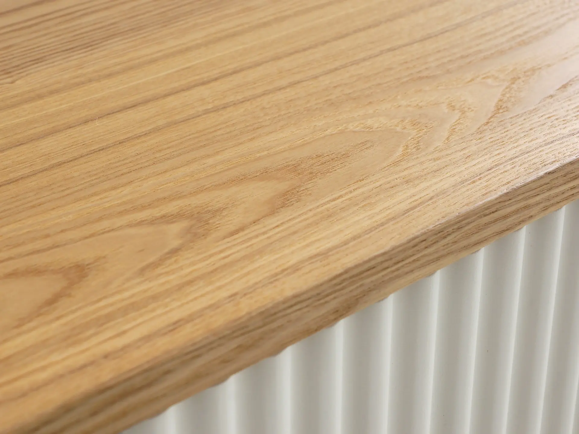 Материал корпуса: МДФ 17 мм. облицованная натуральным шпоном Дуба (крышка, нижний щит, боковые стенки) и ЛДСтП «Белая Шагрень» 16 мм. (внутренние детали корпуса и задняя стенка).