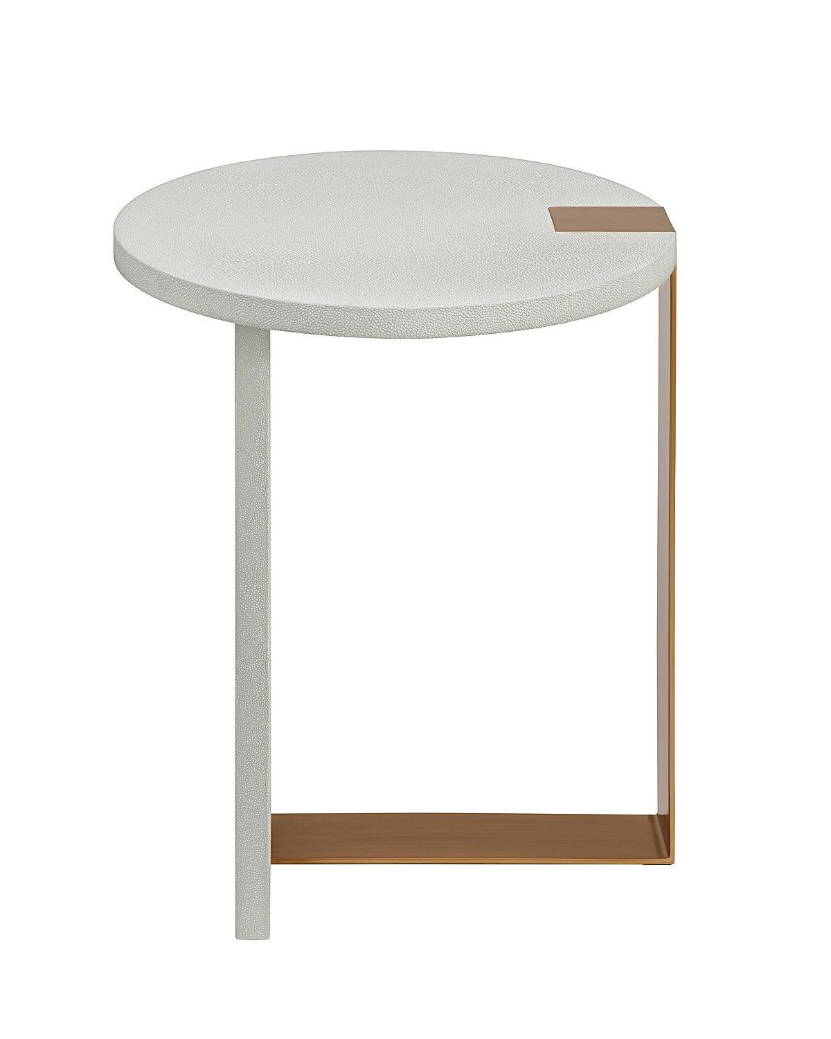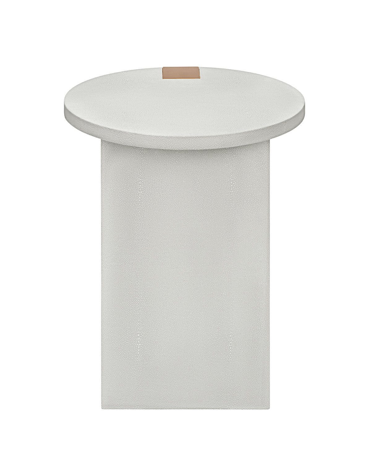 Серый приставной столик “Дидье”, сочетает в себе стиль ар-деко с практичностью раннего модернизма, дополняется такими деталями, как отделка из шагреневой кожи с точным воспроизведением текстуры и рисунка натуральной шкуры ската и металлическая вставка в цветовой гамме латунь.