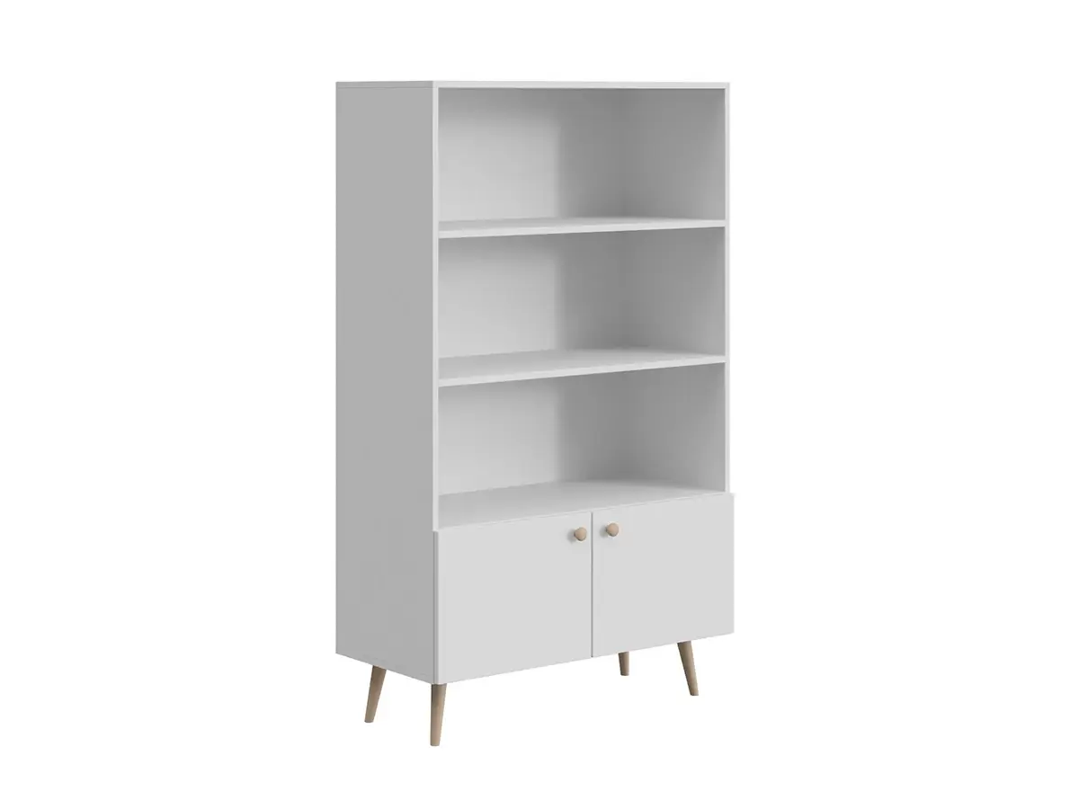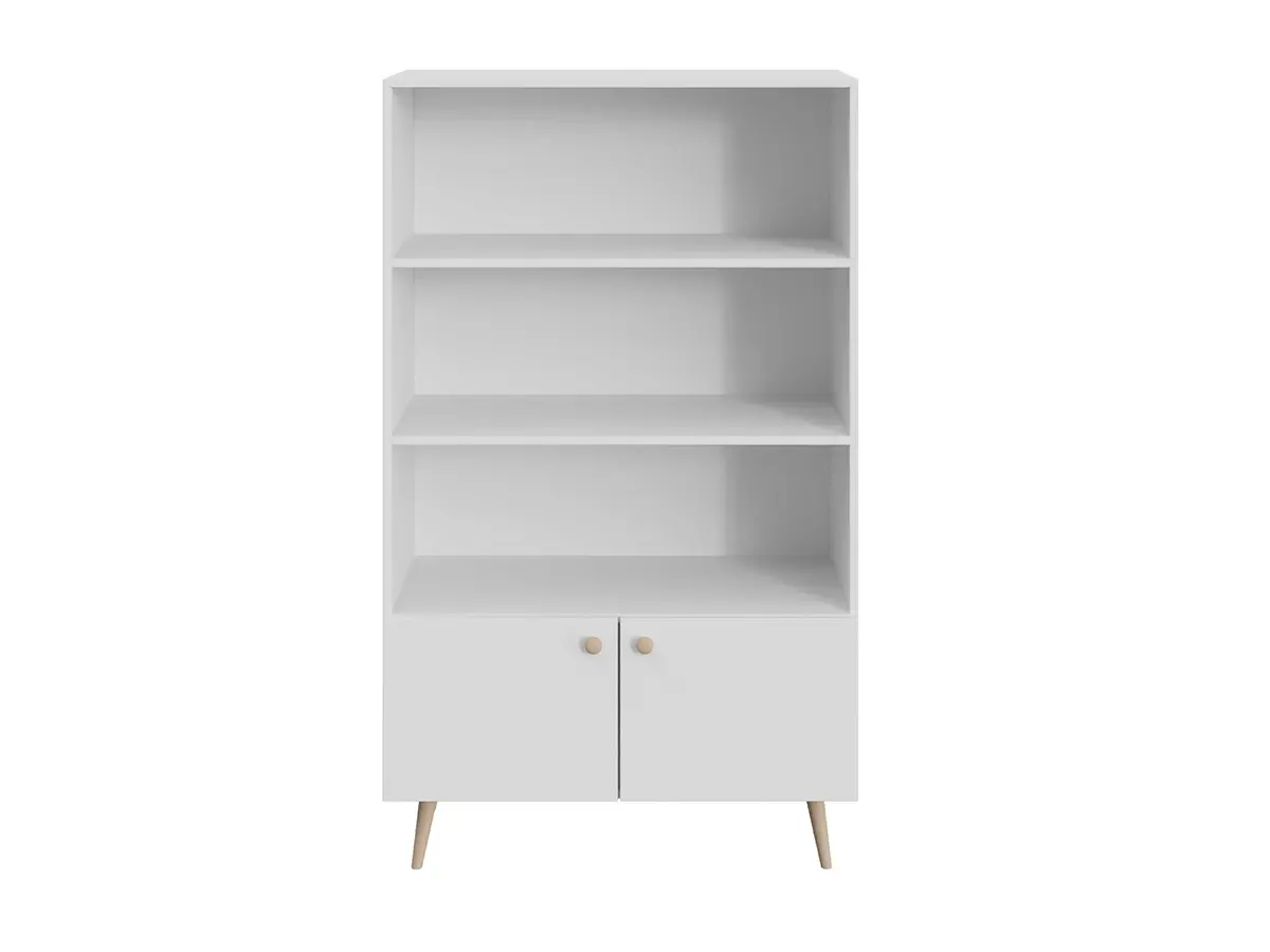 Стеллаж по высоте разделен на два отделения: нижнее отделение за двумя распашными дверями не имеет полок верхнее отделение с двумя полками, полки несъёмные, расстояние между полками 320 мм.