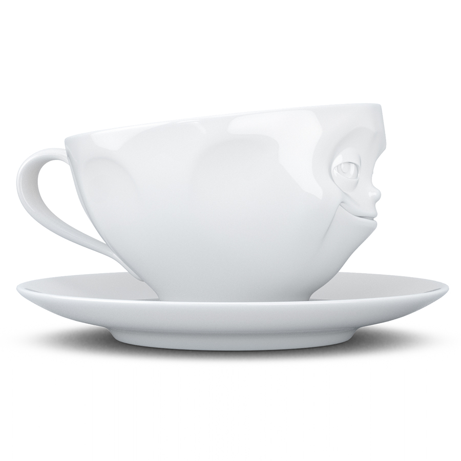 Комплект из оригинальной чашки и блюдца отлично подойдет для подачи кофе и чая. Чашка и блюдце выполнены из высококачественного фарфора. Поставляются в красивой подарочной коробке. Размер чашки: 7х11,7х14 см Диаметр блюдца: 15 см Можно мыть в посудомоечной машине и ставить в микроволновую печь.