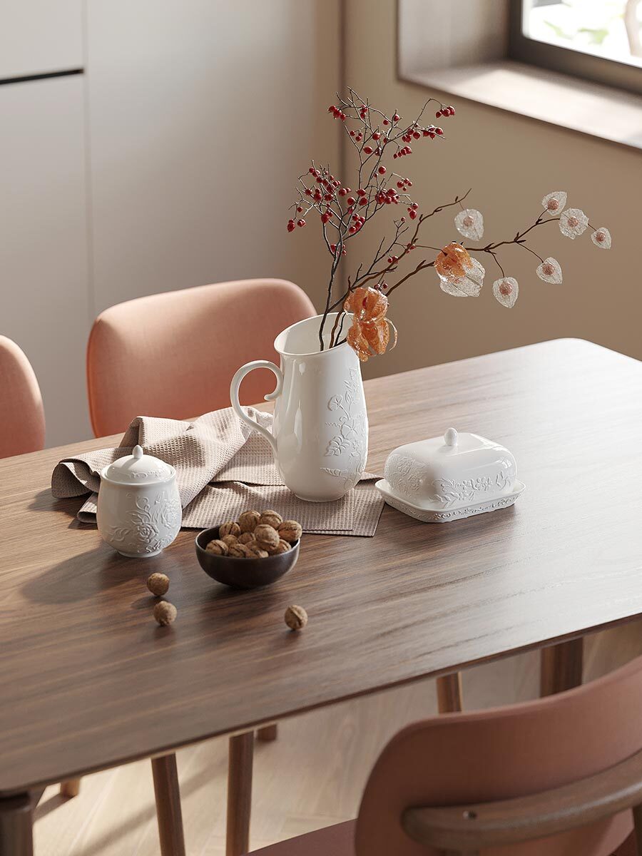 Кувшин English Gardens – выбор настоящих эстетов и возможность привнести в сервировку частичку природной элегантности. Плавные линии, мягкие формы и утонченный цветочный узор создают ощущение свежести и легкости, уюта и гармонии. Вы можете подавать в нем сок, компот, воду или использовать вместо вазы. Особенности и преимущества: - Кувшин идеально подходит как для повседневного использования, так и для особых случаев. - Посуда из прочной каменной керамики устойчива к растрескиванию и появлению сколов. - Глазурь и декор не тускнеют со временем, сохраняя первоначальный цвет и блеск. - Продукт прошел испытание на отсутствие в составе свинца и кадмия в соответствии со стандартными тестами FDA. - Коллекция English Gardens позволяет легко экспериментировать с цветами, текстурами и стилями, создавая красивые композиции и особую атмосферу. Материал: каменная керамика. Объем: 1,7 л. Размеры: 19,2х12,8х23,3 см. Цвет: белый. Можно мыть в посудомоечной машине в деликатном режиме с использованием мягких моющих средств.