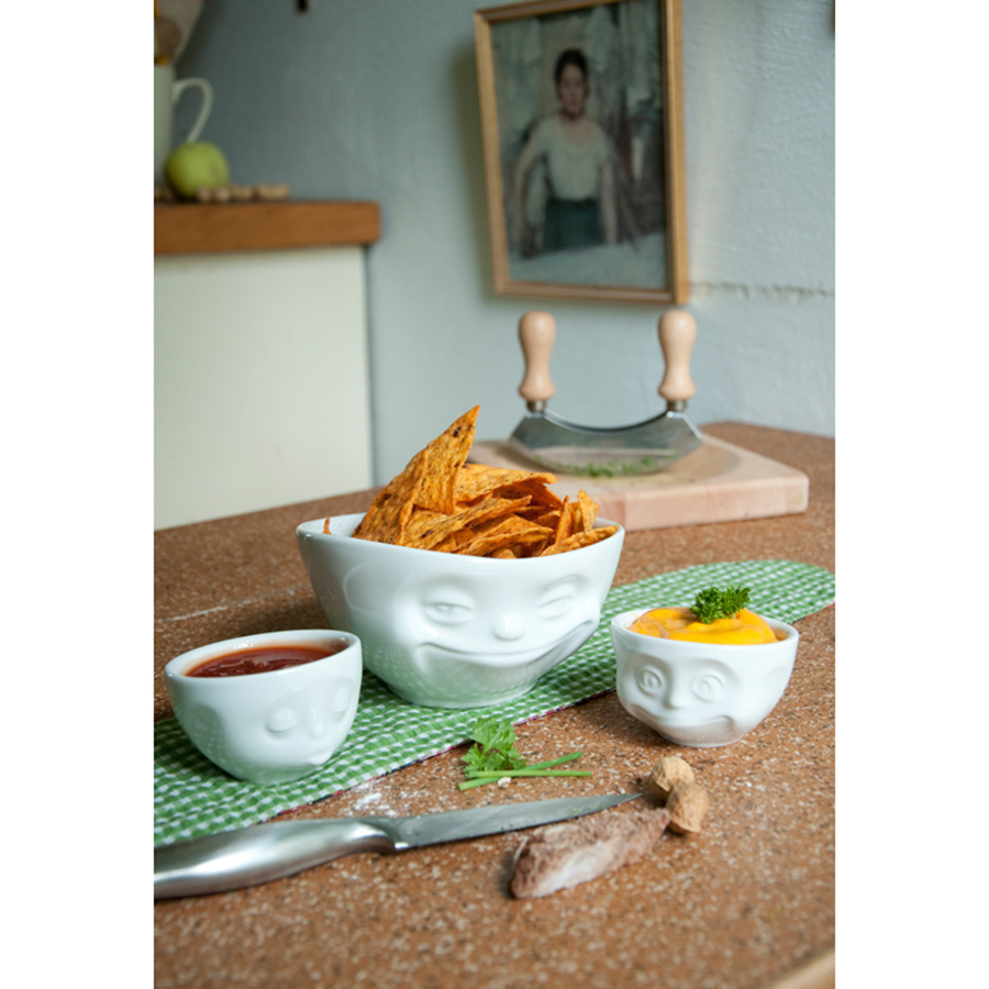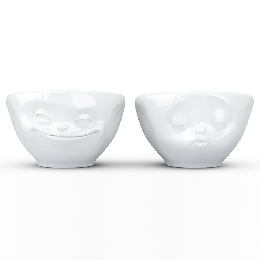 Оригинальные чаши с забавными рожицами отлично подойдут для подачи соусов и десертов. Их также можно использовать для подачи эспрессо. Чаши выполнены из высококачественного фарфора. Поставляются в красивой подарочной коробке. Можно мыть в посудомоечной машине и ставить в микроволновую печь.