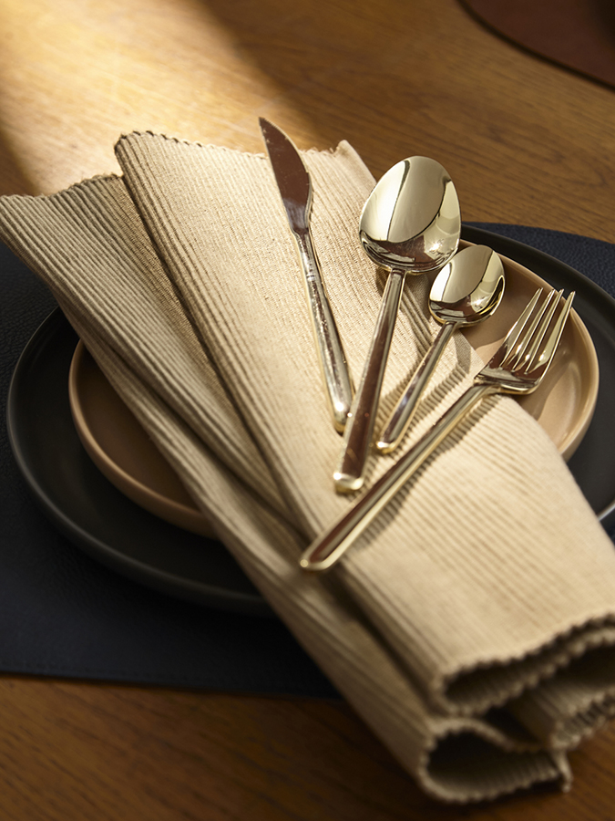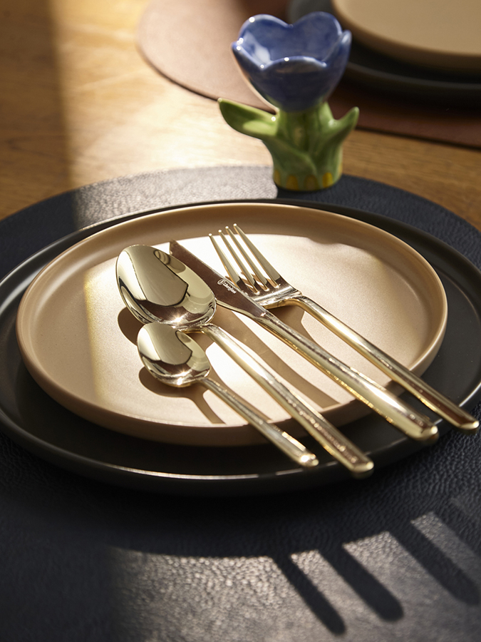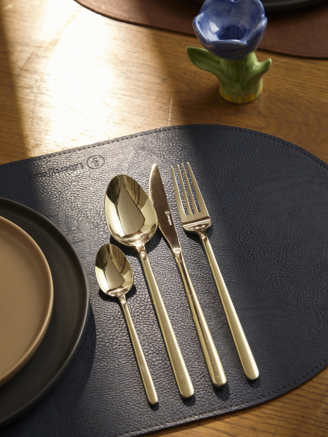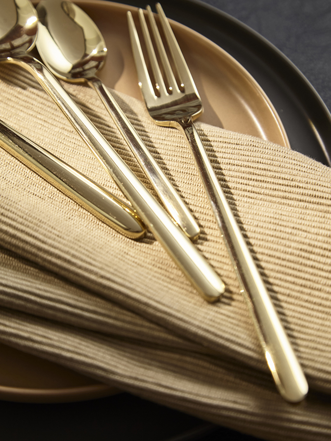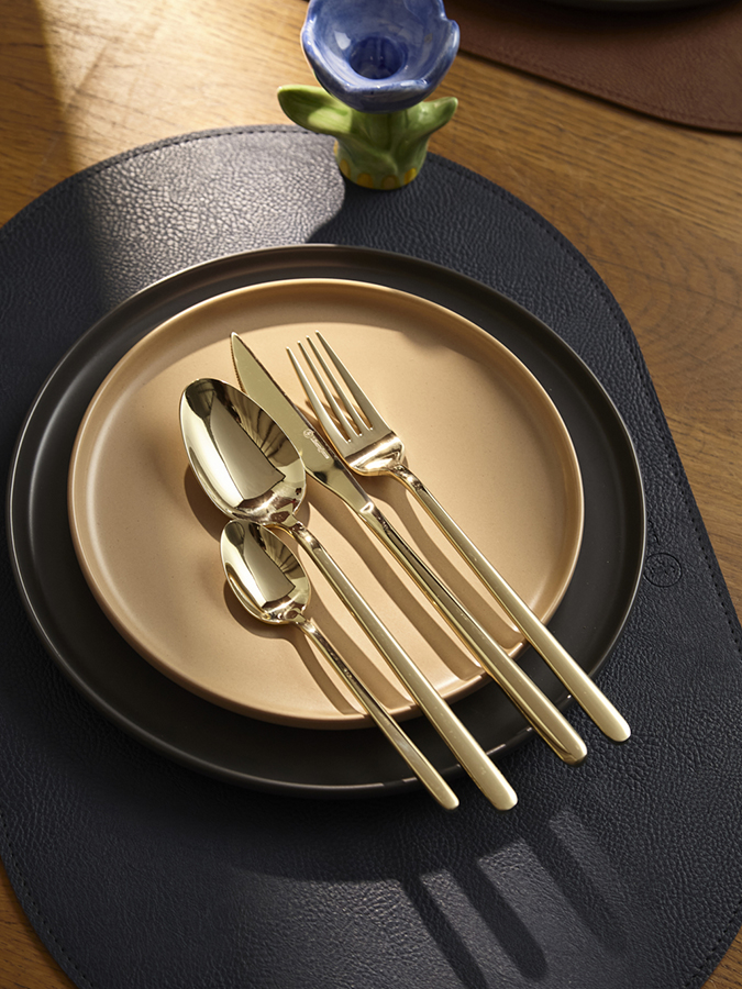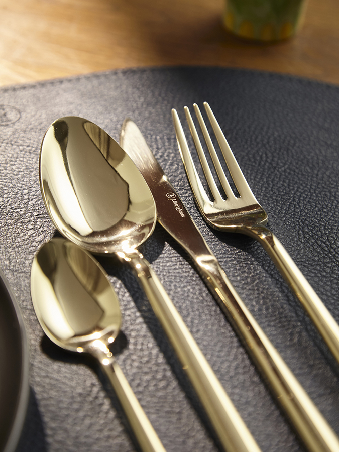 Набор столовых приборов Pure станет идеальным выбором для сервировки стола на любое мероприятие, будь то обычный семейный ужин или праздничный обед. Красивый блеск стали, плавные формы и деликатные изгибы каждого предмета создают гармоничное сочетание стиля и функциональности, позволяя наслаждаться каждым приемом пищи. Набор рассчитан на шестнадцать персон. Стандартный сет на одного человека включает в себя нож, вилку, столовую и чайную ложки. Особенности и преимущества: - Все предметы изготовлены из нержавеющей стали 18/0, которая отличается высокими антикоррозионными свойствами и износоустойчивостью. - Зеркальная полировка придает приборам красивый блеск, а также делает их поверхность более гладкой, обеспечивая долговечную эксплуатацию и простой уход. - Отличительная особенность коллекции – простые, элегантные формы, не перегруженные лишними деталями. - Столовые приборы золотистого цвета с зеркальной полировкой идеально вписываются в классическую и традиционную сервировку, прекрасно сочетаясь с белоснежной скатертью и фарфоровой посудой. В современных решениях они могут служить ярким акцентом на фоне простых и лаконичных элементов. Материалы: нержавеющая сталь 430 (18/0). Длина ножа: 23,5 см. Вес ножа: 68 г. Длина вилки: 21 см. Вес вилки: 54,5 г. Длина ложки: 21,5 см. Вес ложки: 65 г. Длина чайной ложки: 15 см. Вес чайной ложки: 24,5 г. Цвет: золотистый. Полировка: зеркальная. Количество предметов в наборе: 16 шт. Приборы будут дольше сохранять привлекательный вид, если мыть их вручную. Допускается мытье в посудомоечной машине в низкотемпературном режиме с использованием деликатных моющих средств. Запрещается применение абразивов и агрессивной бытовой химии.