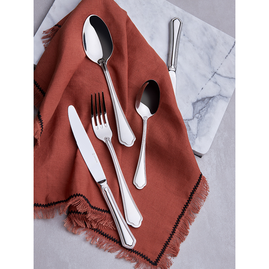 Sonata – удачное сочетание классического дизайна и высокой практичности. Такие столовые приборы не выходят из моды и легко вписываются в различные варианты сервировки, будь то обычный семейный ужин или торжественное мероприятие. Набор состоит из 16 предметов и включает все необходимое для обслуживания 4-х человек. Особенности и преимущества: - Сталь 18/10 характеризуется высокой прочностью, стойкостью к коррозии, благодаря чему изделия из нее сохраняет привлекательный вид долгие годы. - Сталь 13/0, обогащенная 13% хрома, обеспечивает исключительную остроту и долговечность режущей кромки. - Зеркальная полировка не только придает блеск, но и облегчает уход за приборами, позволяя легко удалять с их поверхности пятна и отпечатки пальцев. Материалы: нержавеющая сталь: 18/10 (304), нержавеющая сталь 13/0 (420). Размеры: Нож: длина – 23,1 см; ширина – 2,1 см; толщина – 2 мм; вес – 110,6 г. Вилка: длина – 20,7 см; ширина – 2,7 см; толщина – 3 мм. Ложка: длина – 20,8 см; ширина – 4,6 см; толщина – 2 мм. Чайная ложка: длина – 16,4 см; ширина – 3,7 см; толщина – 2 мм. Цвет: серебристый. Количество предметов в наборе: 16 шт. Приборы можно мыть в посудомоечной машине. Не использовать в микроволновке и на открытом огне.