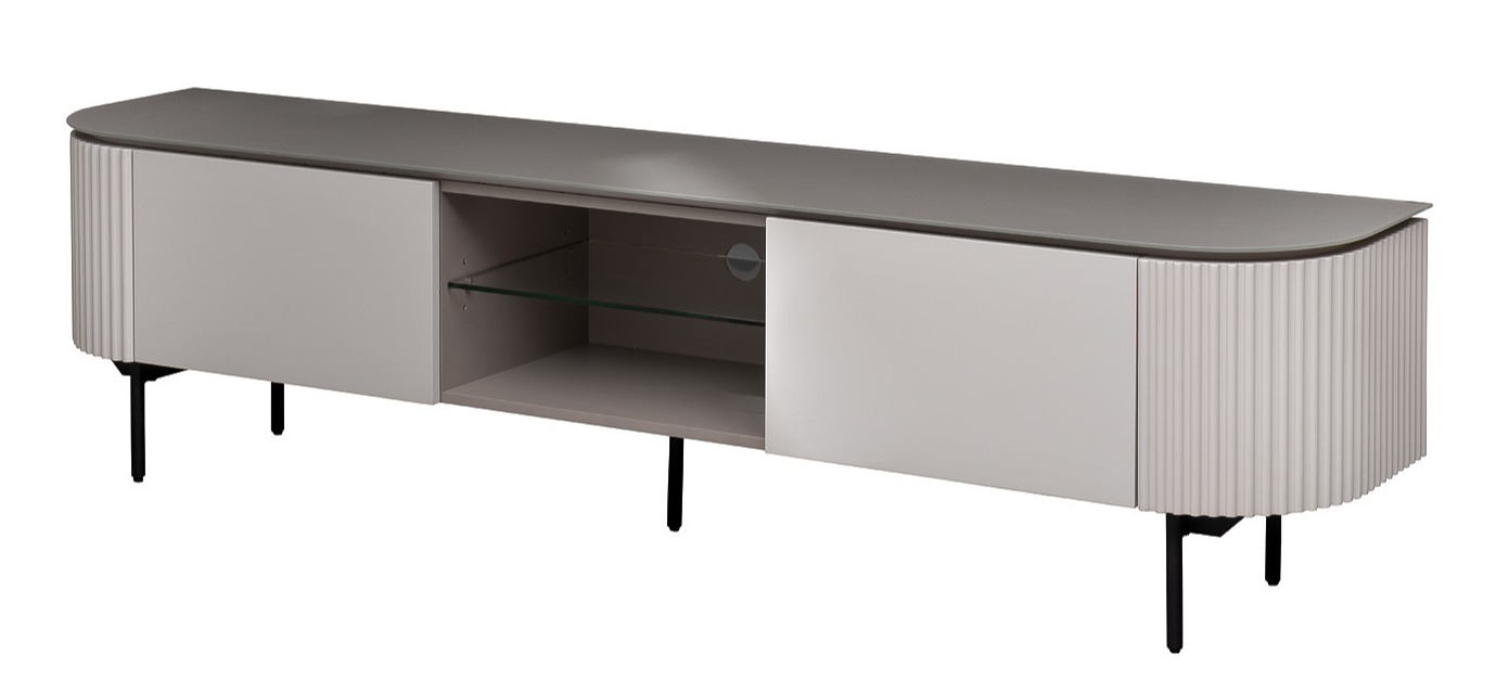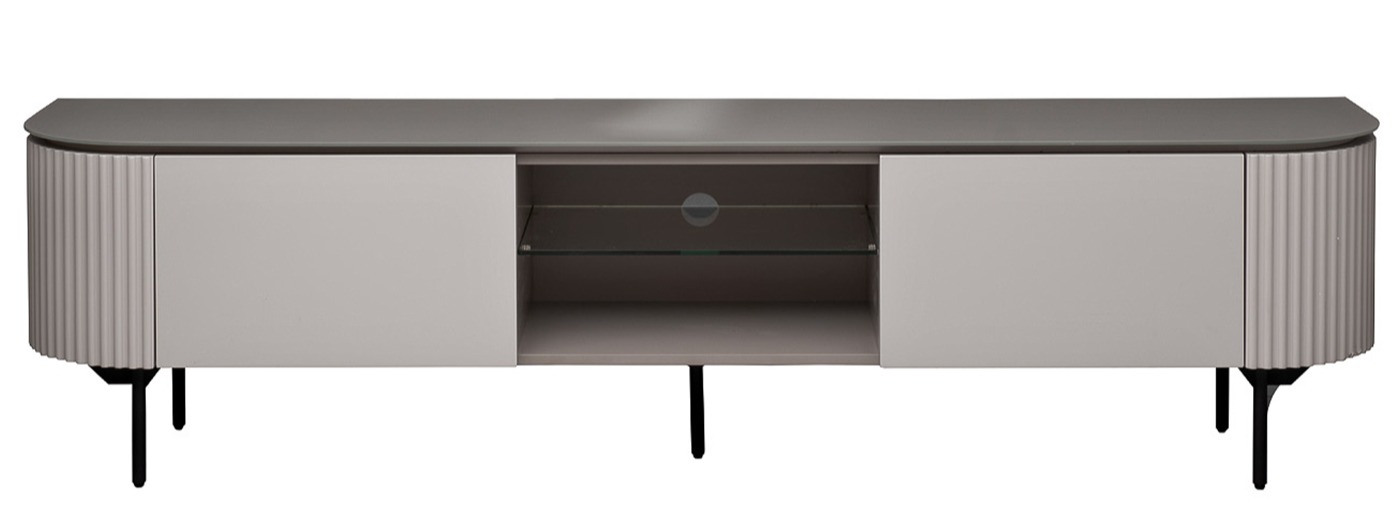 Глянцевое покрытие придает тумбе изысканность и визуальную легкость, а лаконичный дизайн позволяет ей органично вписываться в современные интерьеры. Благодаря ширине 200 см, тумба подходит для телевизоров любой диагонали и создает достаточно места для декора, техники и аксессуаров.