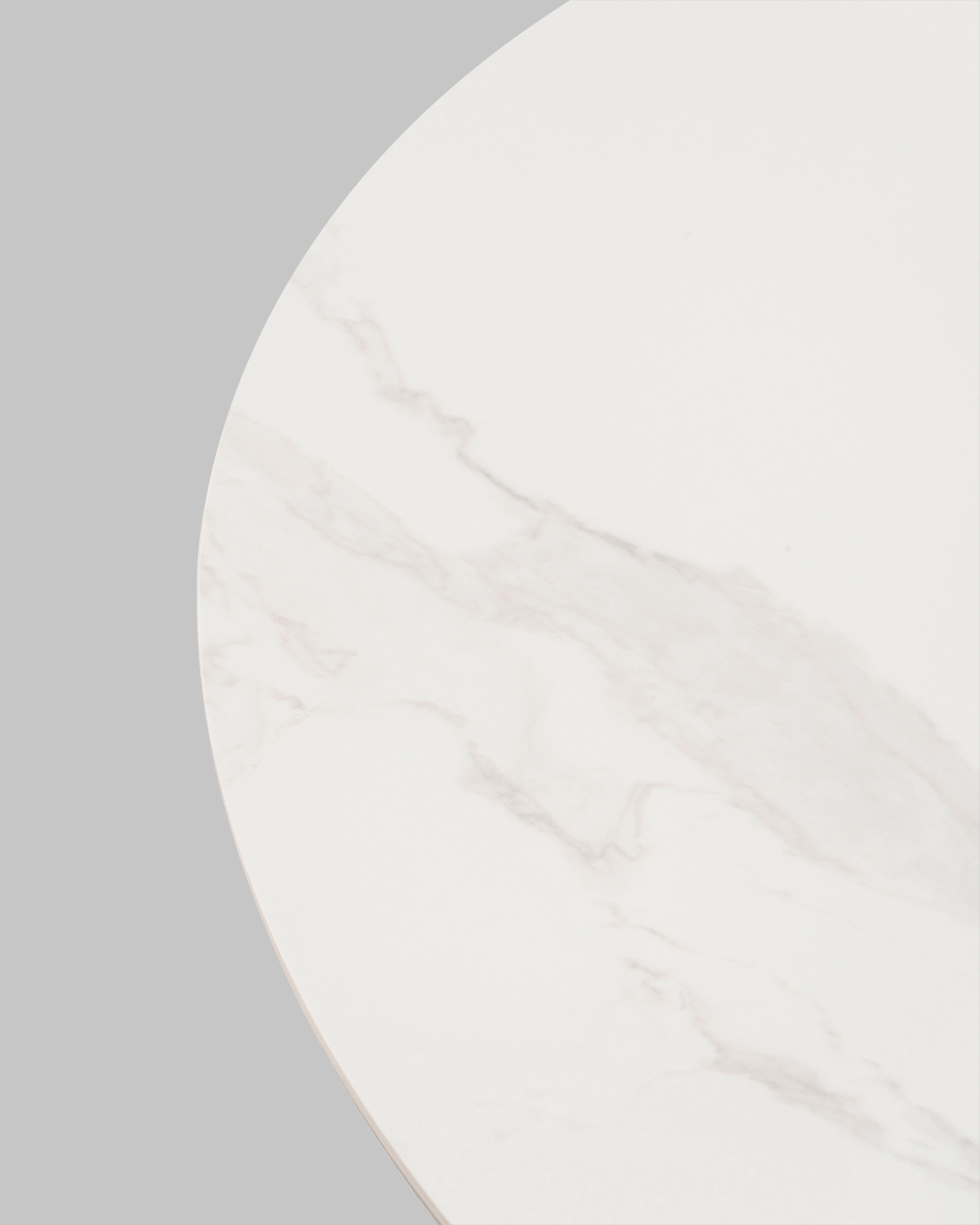 Стол круглый Миндель D100 столешница керамика белый глянец, основание металл латте