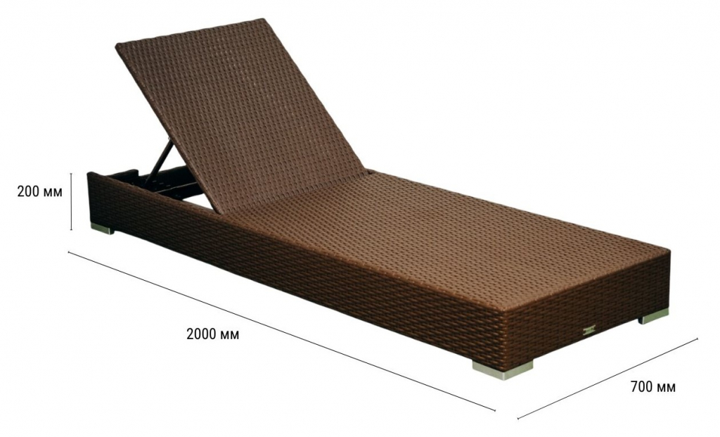 Комфортный шезлонг с регулируемой спинкой, изготовленный вручную из прочного искусственного ротанга на металлическом каркасе. Устойчив к воздействию погоды, идеален для дома, кафе иресторанов, отелей исанаториев. Возможны нестандартные цвета (другие оттенки, яркие варианты) за дополнительную стоимость. Особенности: Металлический каркас выполнен из оцинкованной стали. Материал плетения: искусственный ротанг.Ротанг почти не требует ухода и обладает уникальной водостойкостью, не подвержен заражению грибком, не гниет, выдерживает температуры от -20 до +40. При производстве этого искусственного ротанга используется технология защиты от выгорания под воздействием ультрафиолета (UV-фильтр) и снижения статического электричества (антистатик), обеспечивая долговечность и привлекательный внешний вид. Возможные цвета указаны в палитре на сайте. Регулируемая спинка в 4 положениях. Дополнительно можно приобрести матрас. Для уточнения всех возможных вариантов материала и цвета данного изделия обращайтесь к нашим менеджерам.