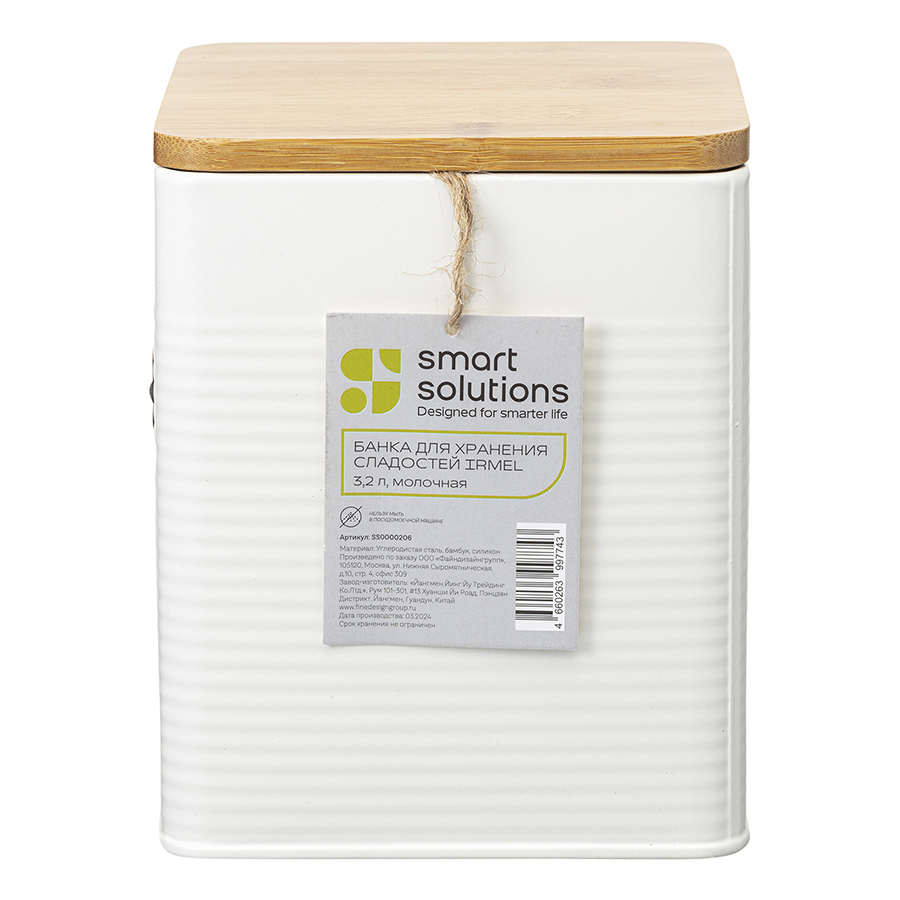 Банка для хранения сладостей Irmel от бренда Smart Solutions станет прекрасным дополнением современного кухонного интерьера. Ее дизайн органично вписывается в различные стилевые решения: минимализм, лофт, фьюжн, эклектика, афро, сканди и другие. Особенности и преимущества: - Использование в изготовлении углеродистой стали увеличенной толщины гарантирует емкости отличные эксплуатационные характеристики – устойчивость к повреждениям, износу и простой уход. - Порошковое покрытие защищает металлическую поверхность от коррозии и обеспечивает изделию дополнительную прочность. - Крышка из бамбука имеет увеличенную толщину и силиконовый уплотнитель, благодаря чему плотно прилегает, исключая попадание внутрь банки пыли и влаги. Материалы: углеродистая сталь, бамбук, силикон. Размеры: 14x14x17,2 см. Объем: 3,2 л. Цвет: молочный. Загрязнения рекомендуется удалять при помощи мягкого влажного материала. После очищения банку необходимо вытереть насухо. Запрещается мытье в посудомоечной машине, использование абразивов и агрессивной бытовой химии.