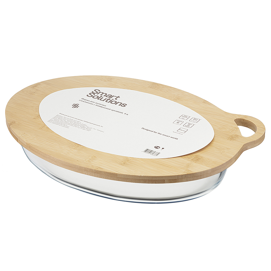 Форма для выпечки стеклянная с бамбуковой крышкой-подносом, 4 л - купить по цене 2 500 руб в интернет-магазине StoreForHome.ru