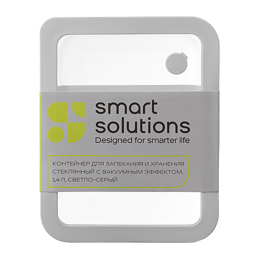 Контейнер для запекания и хранения стеклянный с вакуумным эффектом, 1,4 л, светло-серый