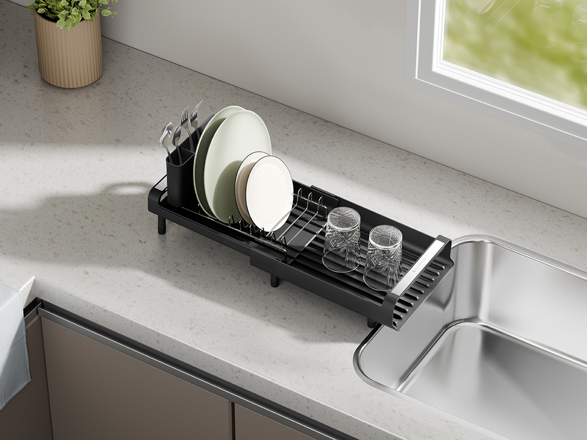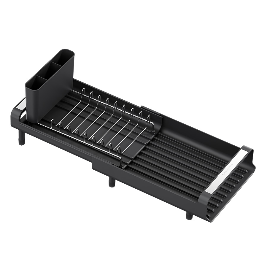 Сушилка Atle – компактная, но в то же время вместительная модель с раздвижной конструкцией, в которой предусмотрены отделения для посуды и кухонных принадлежностей. Удобное размещение и надежную фиксацию тарелок и других емкостей обеспечивают железные разделители. Поддон выполнен из практичного полипропилена, который легко моется. Стальные элементы на корпусе имеют специальное покрытие против отпечатков пальцев. Настольную сушилку можно размещать в любом месте и для ее установки не требуется делать отверстия в стене. Материалы: полипропилен, сталь, железо. Размеры в сложенном виде: 20х28х12,5 см. Размеры в разложенном виде: 20х47х12,5 см. Цвет: черный. Сушилку можно очищать от загрязнений в теплой мыльной воде с помощью мягкой губки. Запрещается использование агрессивной бытовой химии и абразивных материалов.