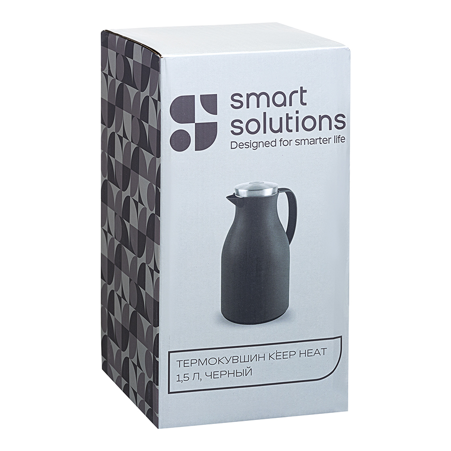 Термокувшин Keep Heat от бренда Smart Solutions – прекрасный вариант для дома, пикника и офиса. Он идеально подходит как для горячих, так и для холодных напитков – вы можете заваривать в нем чай или использовать для компота или морса. Благодаря внутренней колбе с двойными стенками термокувшин долго сохраняет первоначальную температуру напитков. В течение первых 6 часов кипяток остывает до 76? (горячая вода). Особенности и преимущества: - Корпус из пищевого пластика не содержит вредных соединений, в том числе бисфенол-А. - Внутренняя колба из боросиликатного стекла с двойными стенками сохраняет тепло до 12 часов. - Горлышко из нержавеющей стали с тонким носиком позволяет аккуратно наливать напитки без проливания. Материалы: боросиликатное стекло, полипропилен, нержавеющая сталь. Объем: 1,5 л. Диаметр верха: 9,3 см. Диаметр низа: 14,5 см. Ширина с ручкой: 16,5 см. Высота: 26,5 см. Цвет: черный. Рекомендуется мыть вручную.