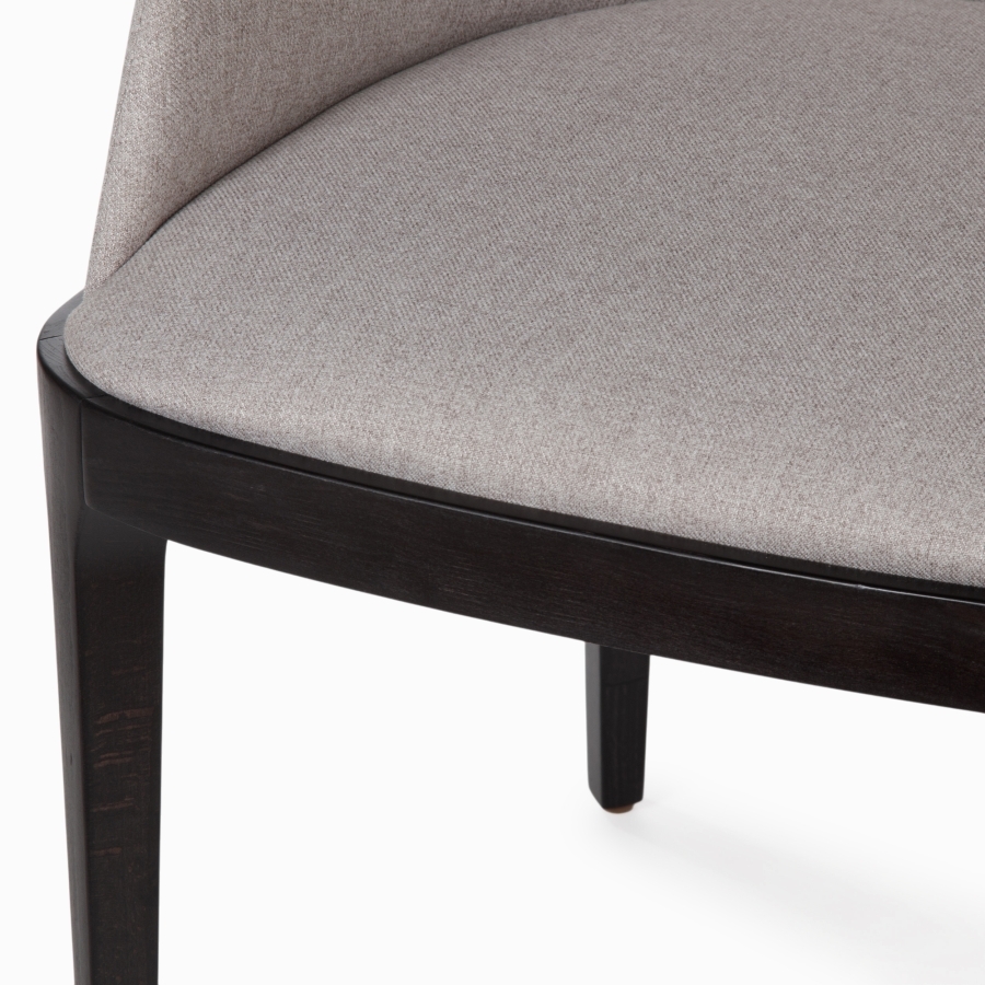 Светло-серая рогожка добавляет тактильного контраста . Высота сиденья 48 см стандартна, но с подлокотниками посадка воспринимается иначе: появляется ощущение защищенности, личного пространства даже за общим столом.
