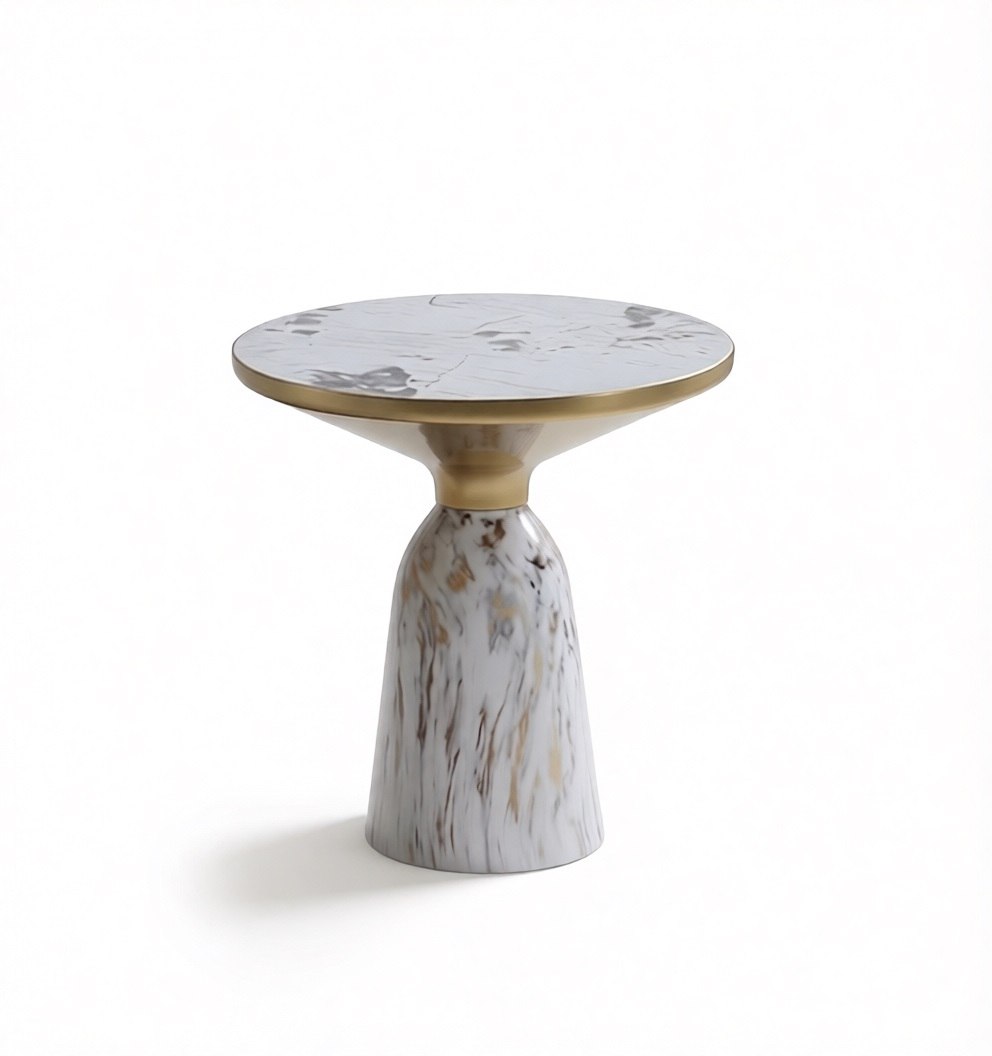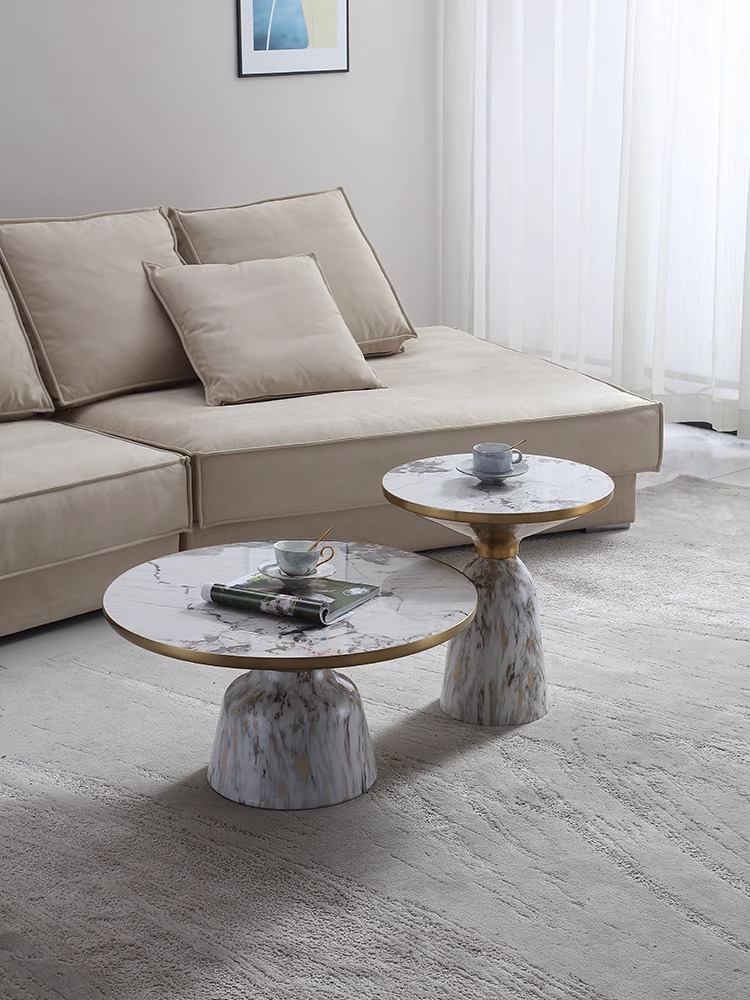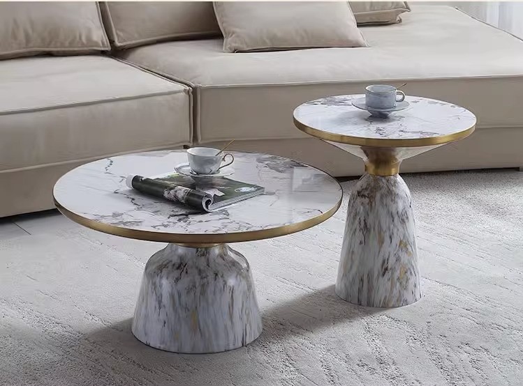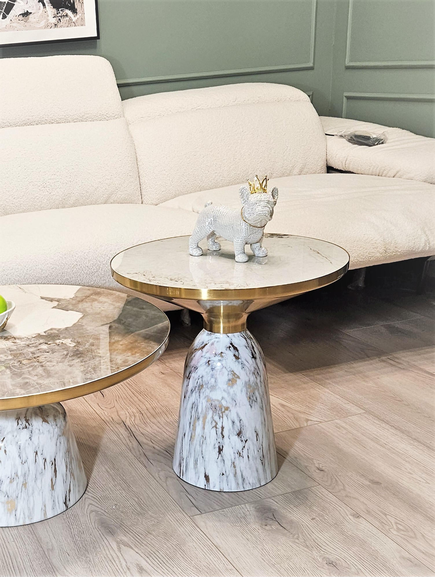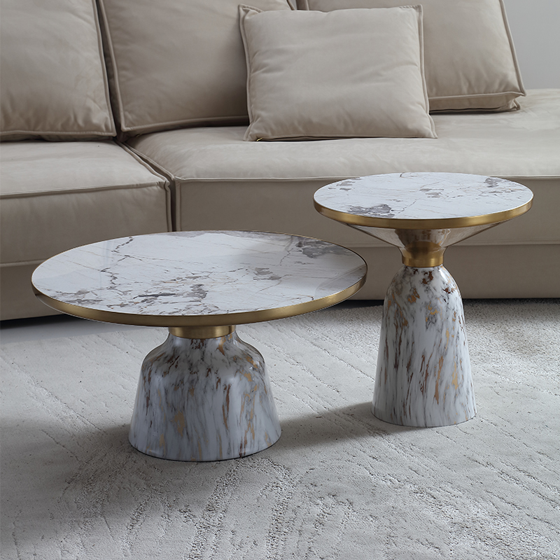 Столики представлены в 2-х размерах:1) диаметр 75 см, высота 40 см;2) диаметр 50 см, высота 51 см. Столешница из керамогранита с глянцевой поверхностью.Нижняя часть выполнена из металла в технике золото браш.Поверхность ножки глянцевая с полимерным покрытием под мрамор.Цвет соответствует фото. Важно! Во время перемещения, переноса или наклона столика следует надежно фиксировать столешницу (удерживать), чтобы предотвратить её случайное выпадение. Поставляется в собранном виде.