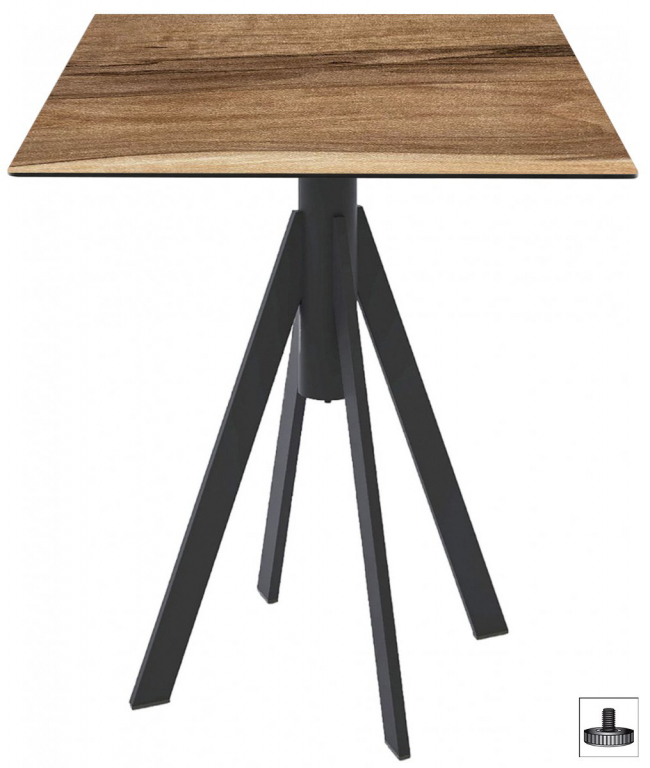 Внимание! Цвет на фотографии может отличаться от оригинала, в зависимости от разрешения и настроек вашего устройства, а также условий освещения при съемке. Стол Fuoz HPL с металлическим основанием и столешницей из HPL (high pressure laminate - ламинат высокого давления) благодаря своей прочности и устойчивости к внешним воздействиям подходит для использования в общественных местах, таких как кафе, рестораны, гостиницы и т. д. Металлическое основание обеспечивает высокую прочность и стабильность конструкции, что позволяет столу выдерживать значительные нагрузки.HPL-столешница также отличается высокой стойкостью к механическим повреждениям, царапинам и истиранию. Сочетание металла и HPL может создать современный и стильный образ, который будет соответствовать актуальным трендам дизайна интерьера. Особенности: Каркас выполнен из металла с порошковым покрытием R9005 (черный). Столешница выполнена изHPL - материала, который выдерживает высокие температуры - до 180°C, не боится воды и не деформируется, обладает стойкостьюк царапинам, ударам и истиранию, а также прост в уходе. Подстолье имеет ножки для регулировки на неровной поверхности.