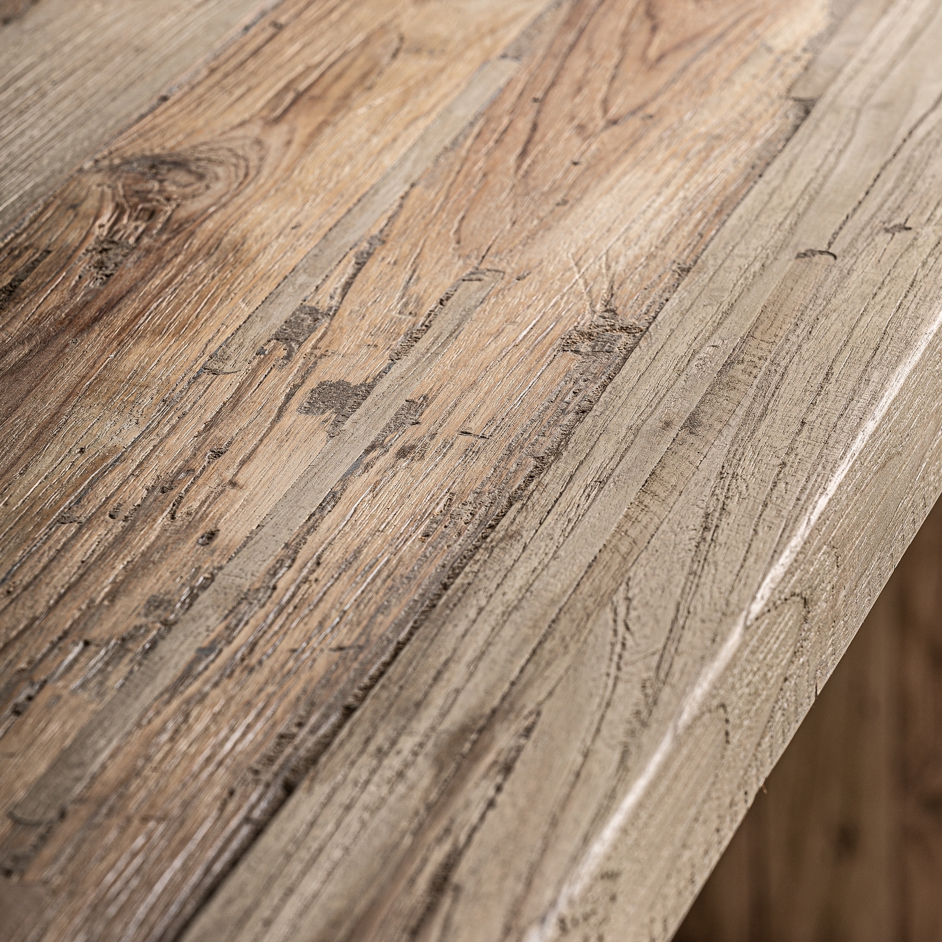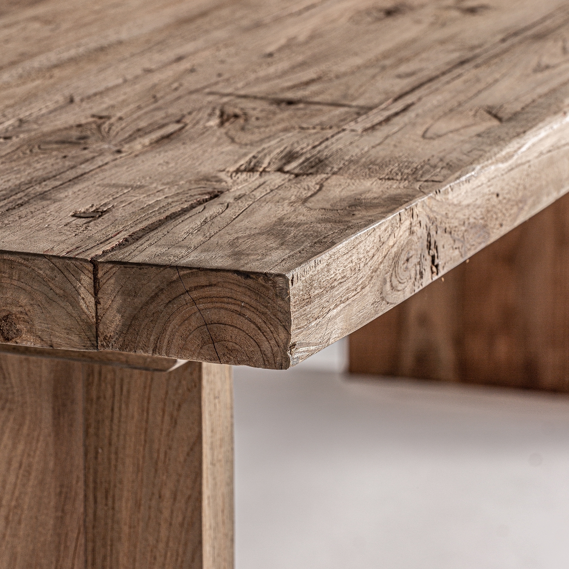 Обеденный стол натурального цвета, колониальный стиль. Изготовлен из железнодорожной древесины.