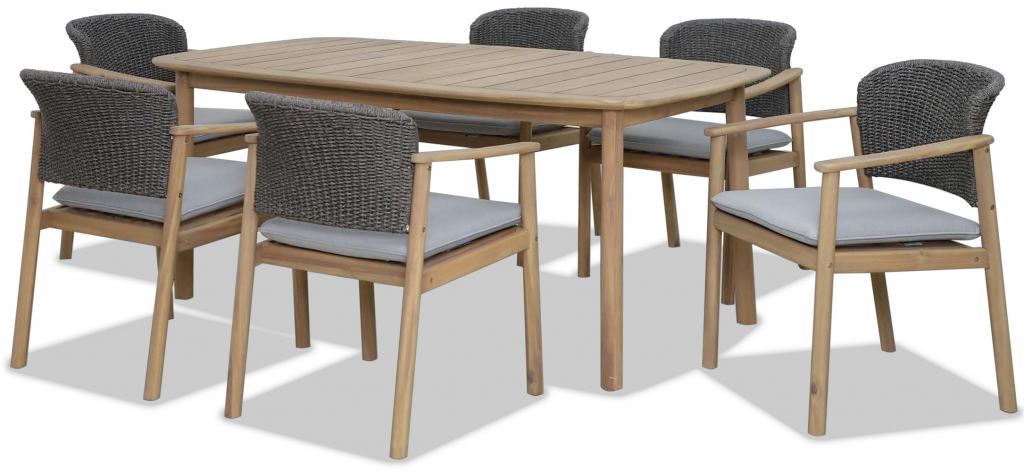 Freeport -это воплощение современного стиля и элегантности для вашего сада. Коллекция, созданная из натуральной акации в сочетании с изысканным веревочным плетением и серыми подушками, привносит уют и роскошь в любое открытое пространство. Стильный большой обеденный стол - идеальный компаньон для обедов на свежем воздухе. Прочный деревянный каркас обеспечивает надежность и долговечность, а модный дизайн подчеркивает вкус и статус владельца. Freeport -это комфорт, стиль и природная эстетика на вашей веранде. Особенности: Материал стола - АКАЦИЯ, отделка Rose Grey. Древесина, из которой изготовлена мебель, имеет сертификацию FSC (Forest Stewardship Council) - гарантия качества и происхождения древесины. Знак FSC - показатель того, что продукция происходит из леса, в котором ведется экологически и социально ответственное лесное хозяйство. Благодаря своей долговечности, прочности и устойчивости к вредителям эта древесина была создана для изготовления садовой мебели. Страна происхождения древесины: Вьетнам, Малайзия. Средняя плотность древесины: 550 кг/м3. Инструкция по уходу.