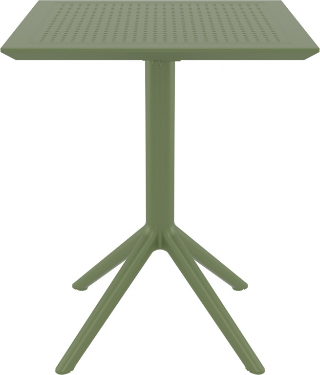 Квадратный складной пластиковый стол Sky Folding Table со столешницей из погодостойкого пластика и каркасом из стали (внутренний стержень). Пластиковые столы серии Sky станут отличным выбором для обстановки фуд-кортов, кафе, ресторанов и баров. Благодаря использованию высококачественных материалов, они долгое время не теряют своего привлекательного внешнего вида, даже несмотря на активную эксплуатацию. Их можно использовать в помещении и на открытых площадках. Особенности: столешница изготовлена из погодостойкого пластика; металлический каркас не ржавеет, не поддается коррозии; устойчив к ультрафиолету и атмосферным осадкам, выдерживает минусовую температуру до 20 градусов; может быть разобран; возможность складывания; подходит для использования в помещении и на открытом воздухе. Открыть технические характеристики. Открыть инструкцию по сборке.