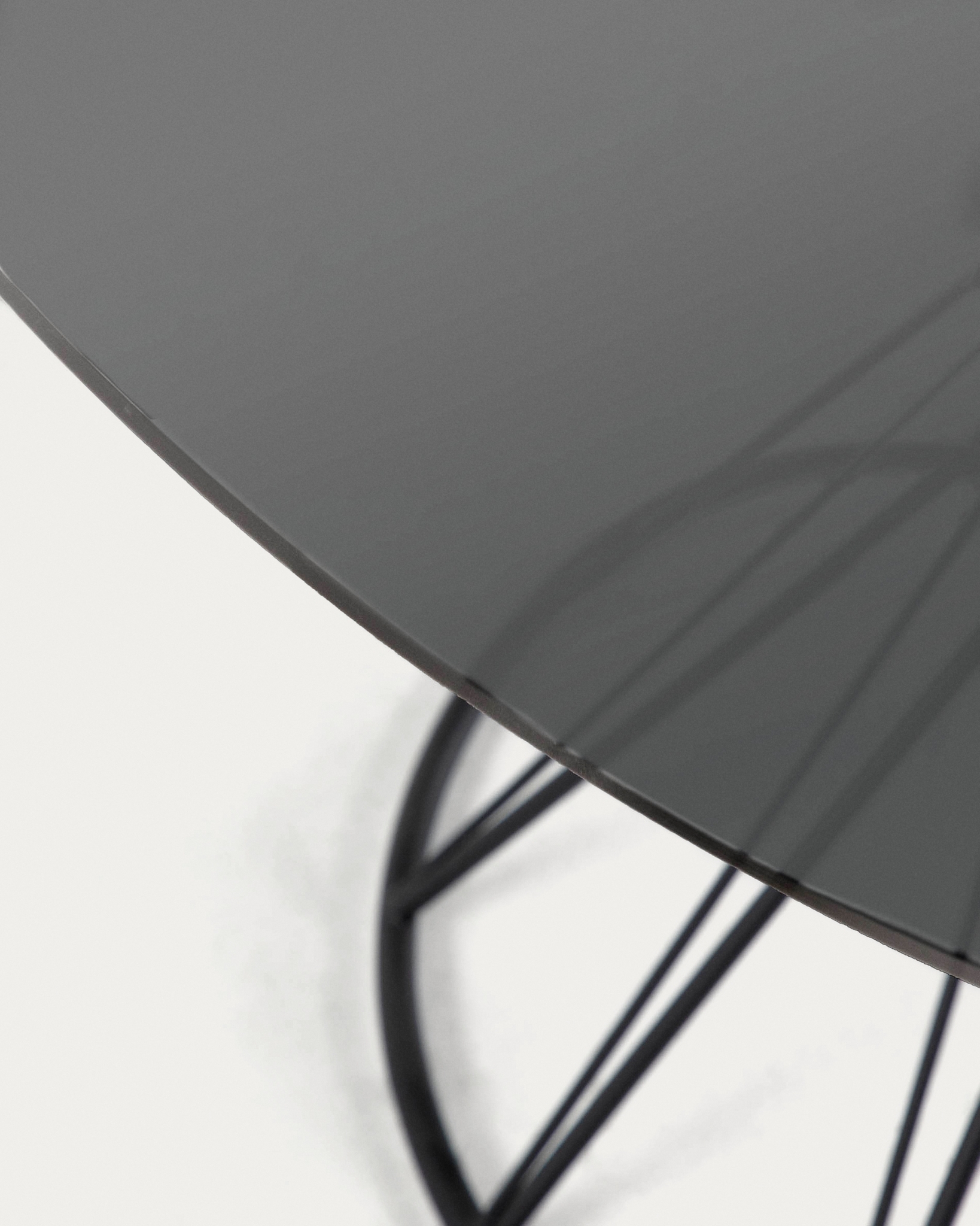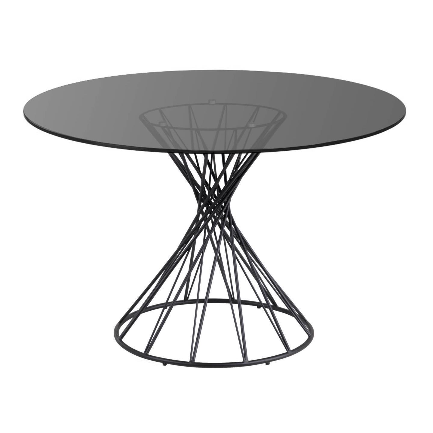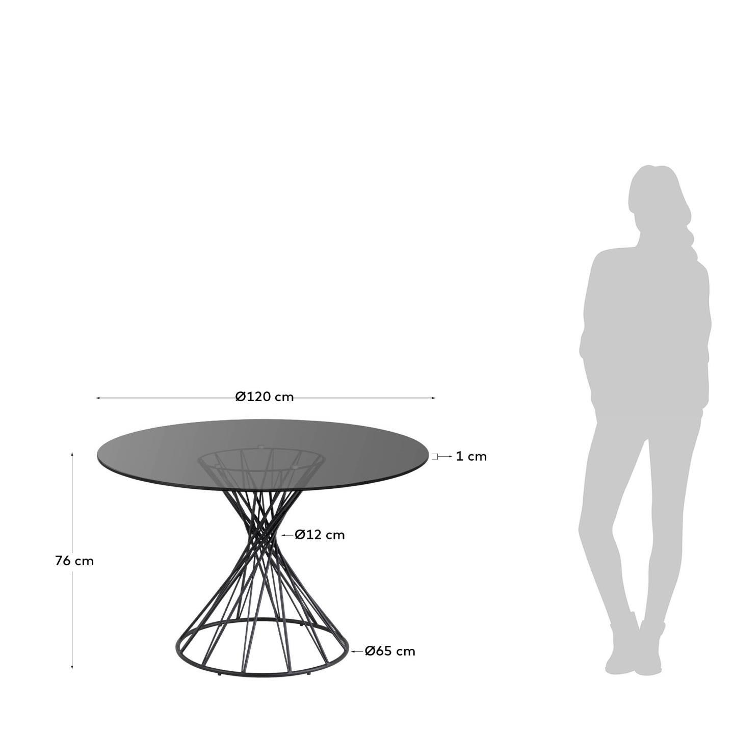 Niut стеклянный обеденный стол Ø 120 cm от фабрики La Forma – фееричный дизайн для особенного интерьера. Стол выглядит ярко, эффектно, по-дизайнерски смело. Первое, что надолго задерживает взгляд, это стойка. Она настолько мастерски закручена, что даже не верится в ее исключительную стальную прочность. Матовое черное стекло завораживает. Оно придает изделию некий шарм и полную гармонию с общей концепцией. Стол круглый. Столешница выполнена из черного прозрачного стекла. Она ударопрочная, высотой 1 см. Стойка металлическая, имеет сварную конструкцию, состоящую из переплетенных между собой прутьев. Все элементы покрыты черной эпоксидной краской от защиты металла от влаги и загрязнений. Стойку имеет форму сдвоенного конуса, где диаметр узкой центральной части составляет 12 см, а основания – 65 см. Размеры: диаметр – 120 см, высота – 76 см. Вес изделия составляет 34,4 кг. Стол рассчитан на 6 посадочных мест. Максимально допустимая нагрузка – 60 кг. Сборка занимает по времени 20 минут. Крепеж и инструкция включены в комплектацию.