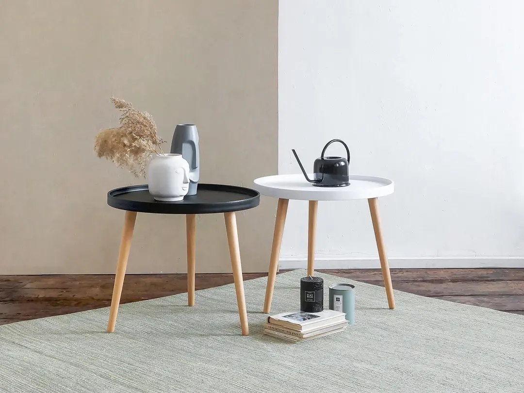 Кофейный столик Kid. Небольшой круглый столик высотой 45 см. Диаметр столешницы - 50 см, материал – полипропилен. По краю стола сделан аккуратный бортик - можно не бояться что-то пролить. Ножки из натурального бука обеспечивают устойчивость и легкость. Наличие подпятников предохраняющих от царапания пола. Представлен в черном и белом цвете.