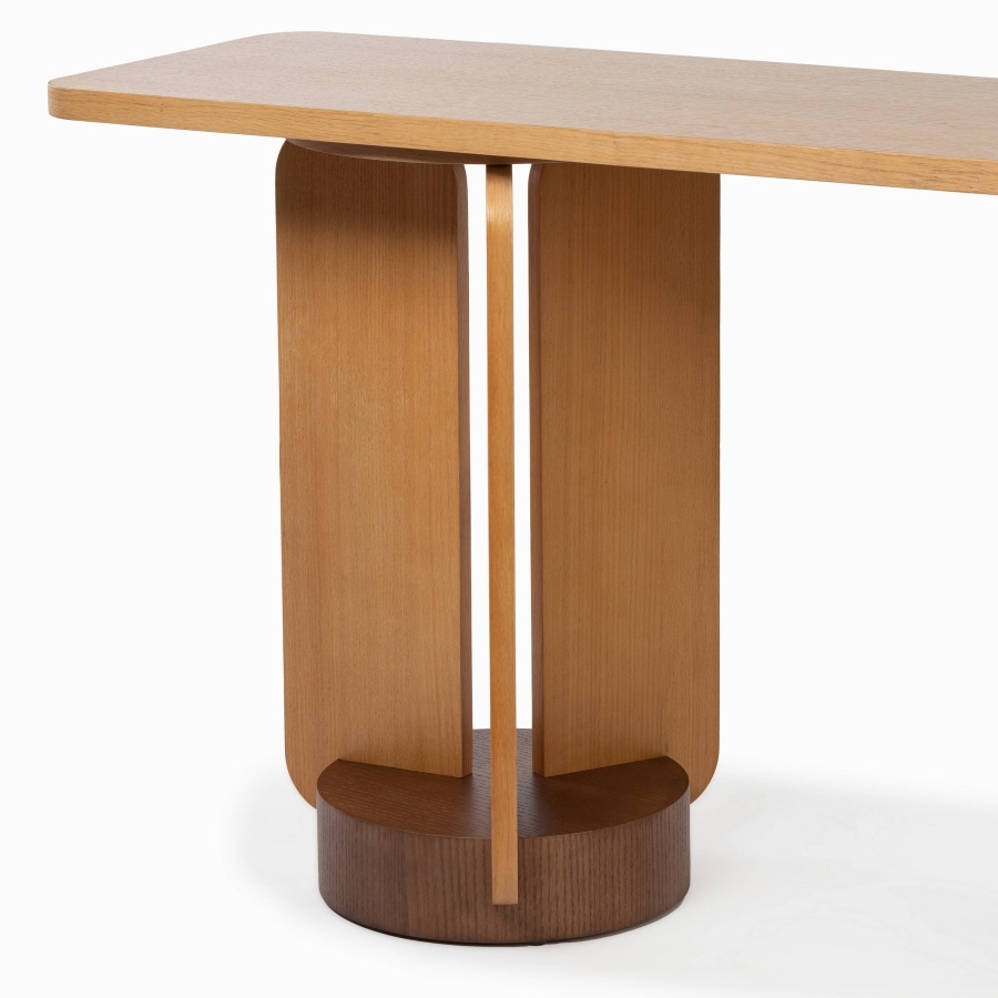 Консоль из коллекции Ollet — это стильный и практичный элемент для вашего интерьера. Модель выполнена из качественных материалов: дуба, фанеры и МДФ, что обеспечивает её надежность и долговечность. Натуральный коричневый цвет создает теплую и уютную атмосферу в помещении.