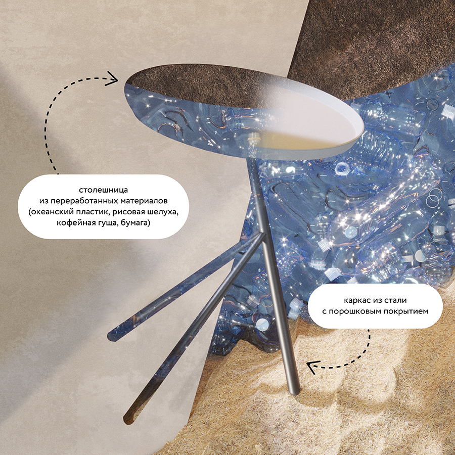 Столик приставной Sustainable collection – не просто предмет мебели, а олицетворение заботы об окружающей среде и стремления к функциональному дизайну. Особенности и преимущества: - Материалы, использованные в создании столешницы, не только делают ее прочной и устойчивой, но и снижают негативное воздействие на окружающую среду. - Стальной каркас с порошковым покрытием обеспечивает столику практичность, надежность и долгий срок службы. - Модель с круглой столешницей смотрится элегантно и не занимает много места, благодаря чему отлично подходит для небольших помещений. - Нейтральное цветовое решение позволяет легко интегрировать мебель в различные варианты оформления интерьера. Коллекция Sustainable создана с применением переработанных материалов, таких как рисовая шелуха, кофейная гуща, бумага и пластик, собранный в океане. Такой подход к производству товаров помогает уменьшить негативное влияние потребительского образа жизни на окружающую среду и вдохновляет на выбор осознанного пути развития. Полученные таким способом предметы имеют необычный вид и высокие эксплуатационные характеристики. Материалы: столешница – переработанный материал, каркас – сталь с порошковым покрытием. Размеры: 37,7х37,7х50 см. Цвет: серый/черный. Пыль и загрязнения с поверхностей можно удалять при помощи мягкого влажного материала. Сразу после очищения мебель рекомендуется протереть сухой тканью. Запрещается применение жестких щеток, абразивов, порошкообразных и едких средств на основе кислот.