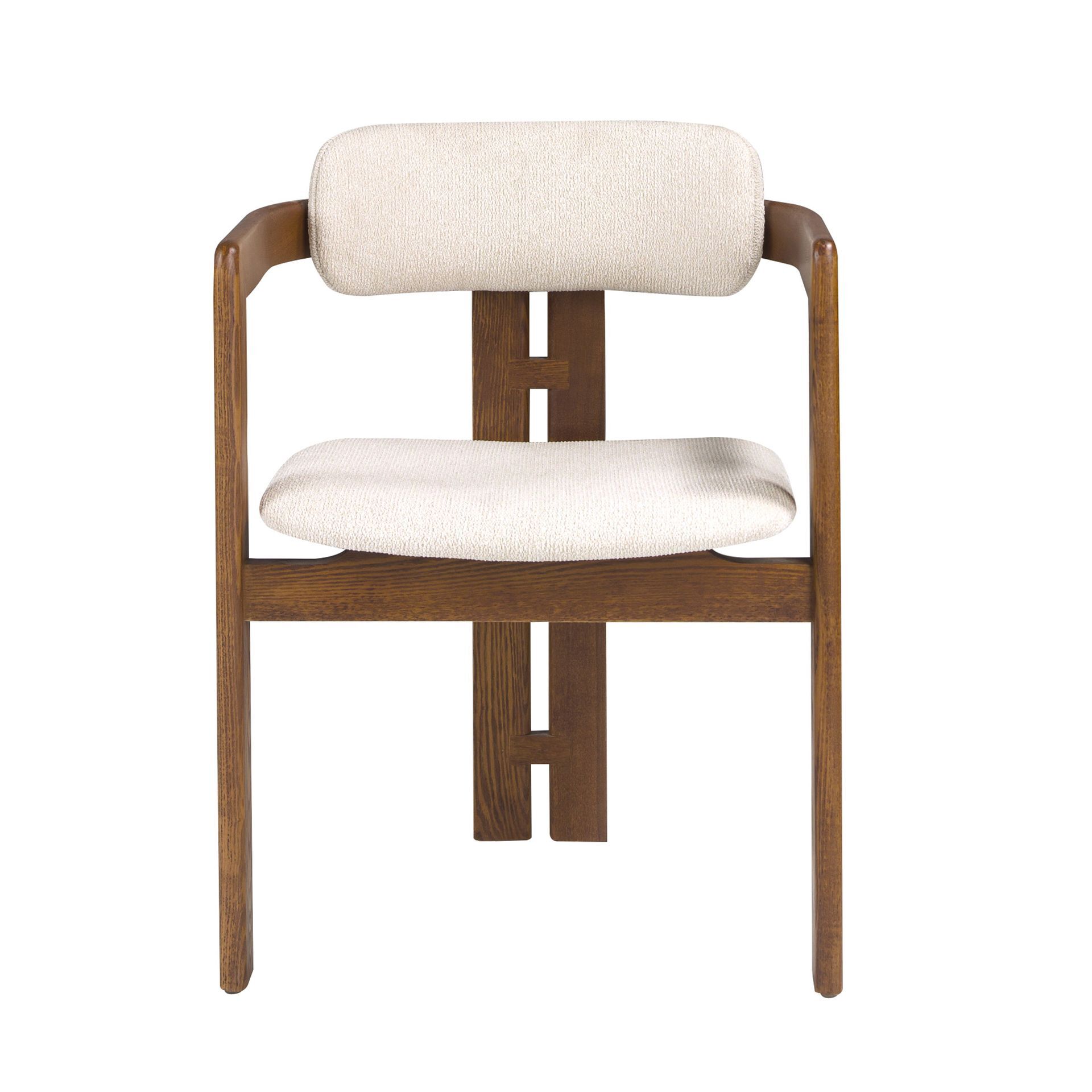 Стул с подлокотниками в современном дизайне, с сиденьем и спинкой, обитыми тканью бежевого оттенка. Его деревянные ножки орехового цвета в авангардном, но неподвластном времени стиле сделают его незаменимым предметом мебели для вашей кухни или столовой. Этот стул от Angel Cerdá сочетает в себе уникальный и индивидуальный стиль бренда, а также высочайший комфорт и устойчивость благодаря высокому качеству обивки и оригинальной конструкции ножек.